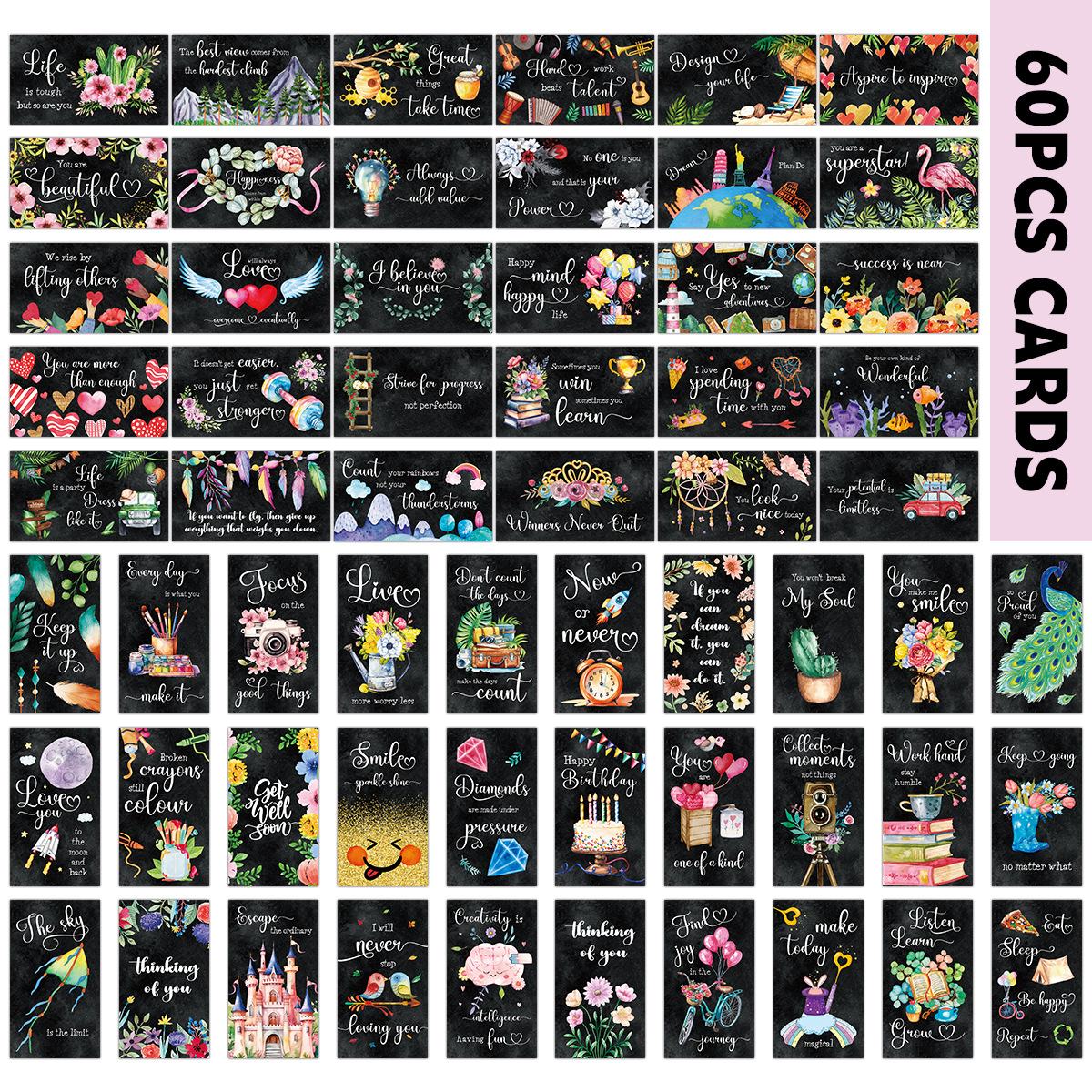 60 국경 간 장려 카드 칠판 영어 이름 손으로 쓴 인센티브 런치 박스 노트 영감 카드스토어 가기