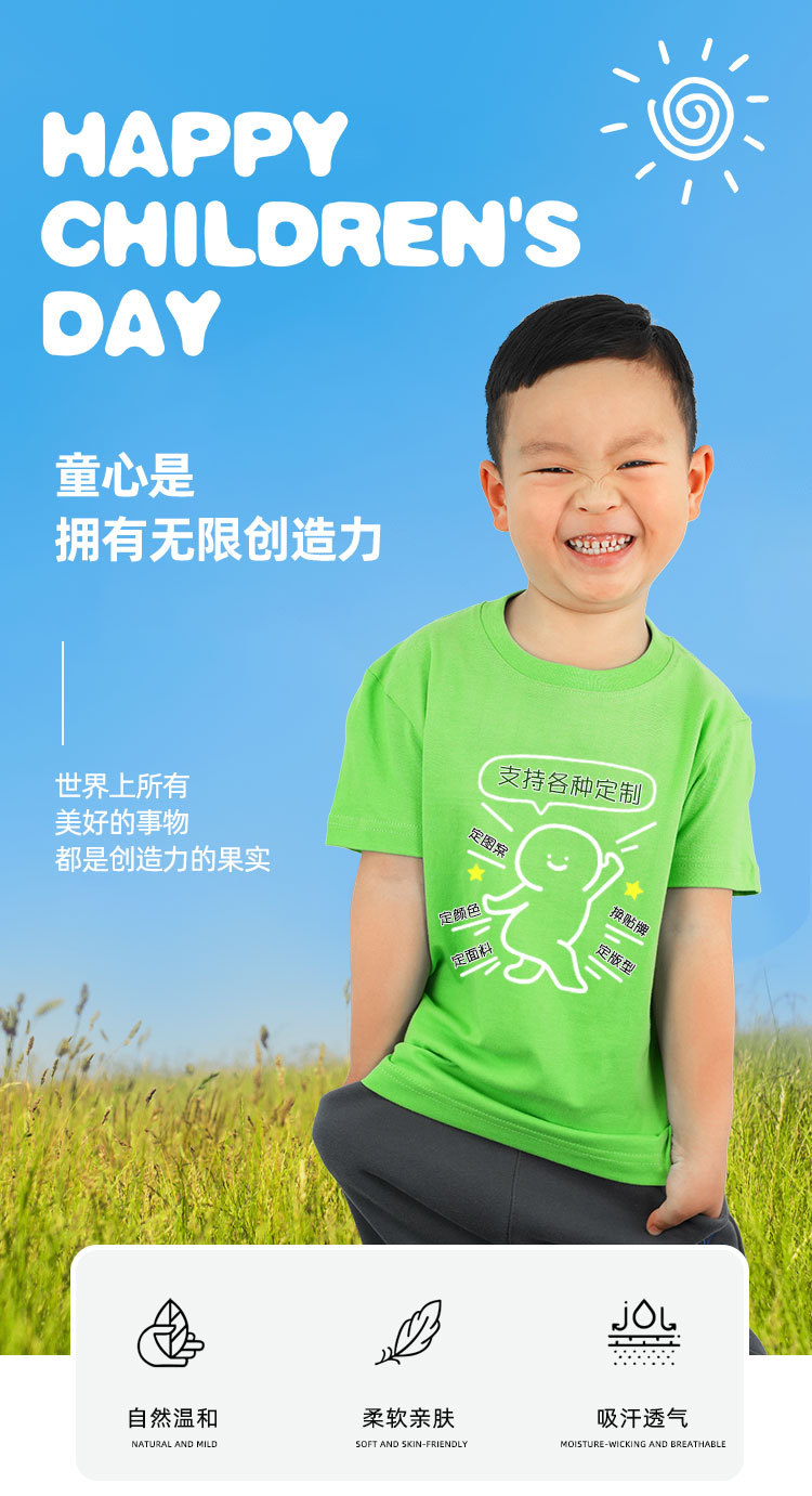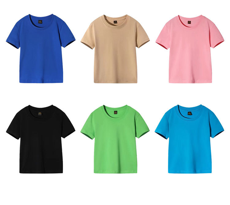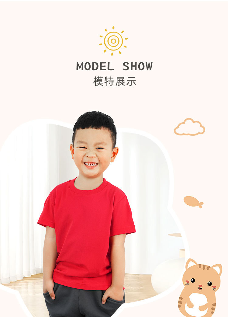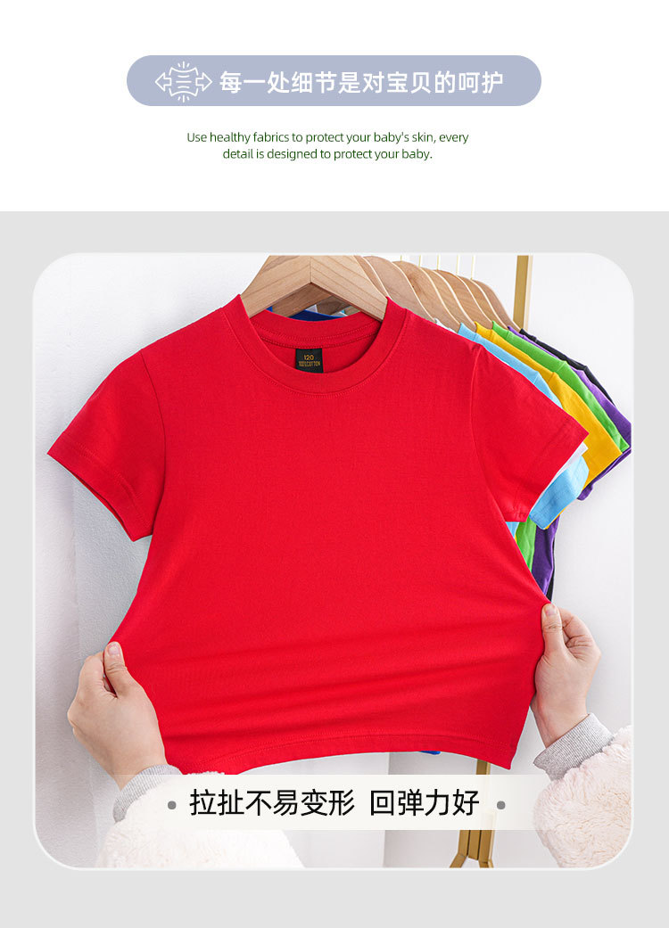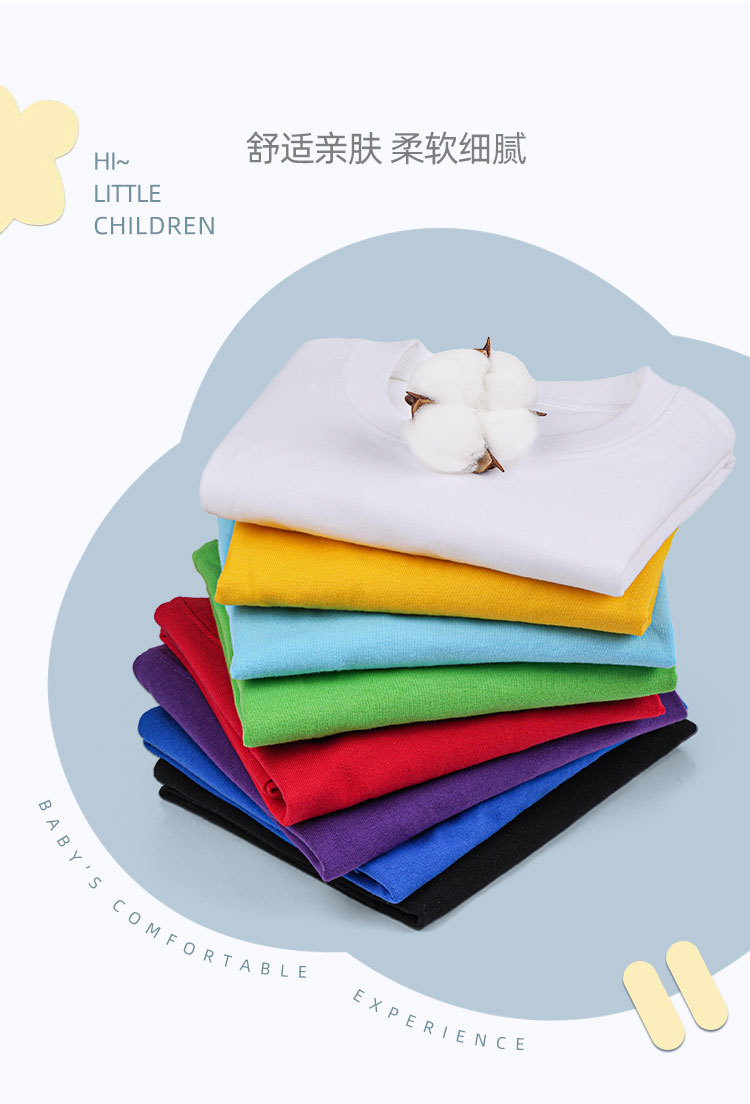 여름 헤비급 티셔츠 아동용 반팔 캐주얼 유치원 교복 문화 셔츠 인쇄 단색 순면 라운드 넥