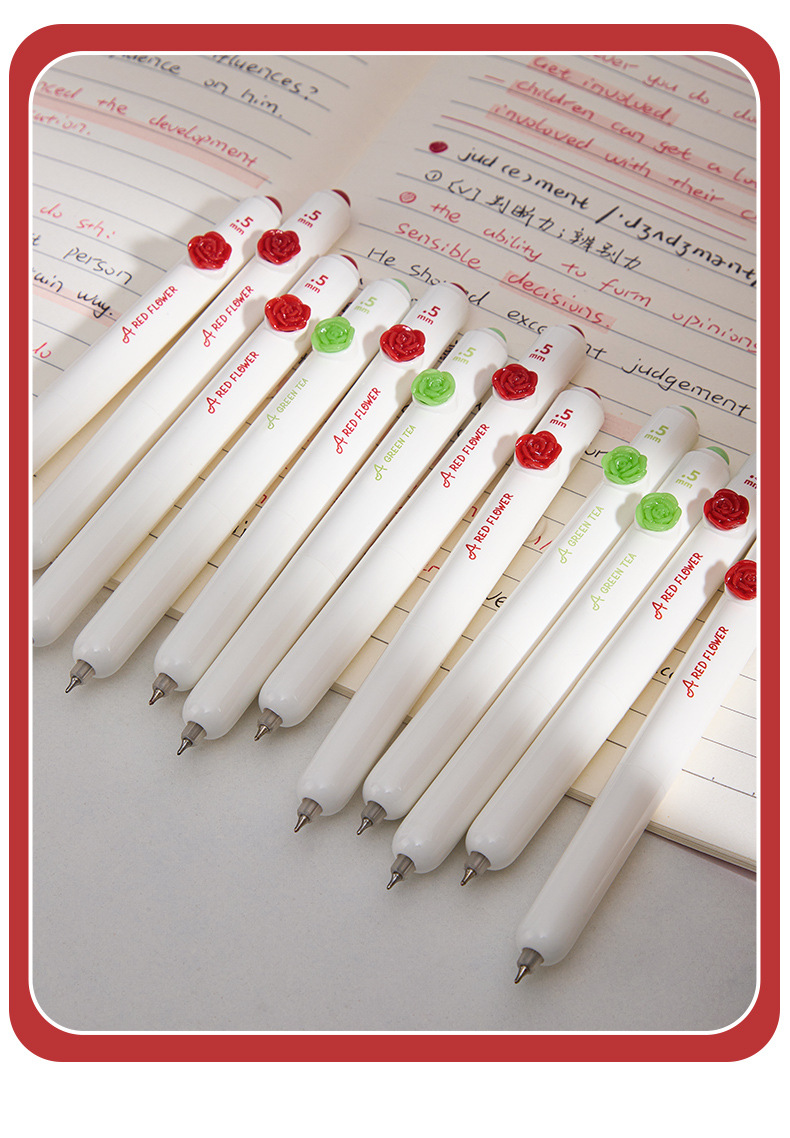 작은 붉은 꽃 프레스 젤 펜 꽃 패치 포켓 펜 높은 색상 가치 펜 학생 테스트 빠른 건조 브러시 펜