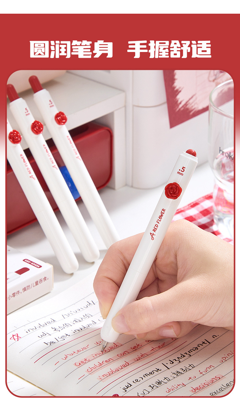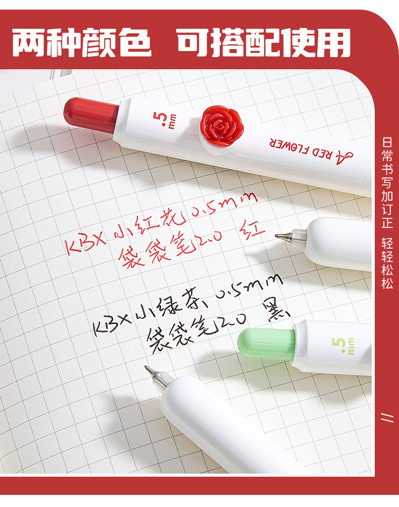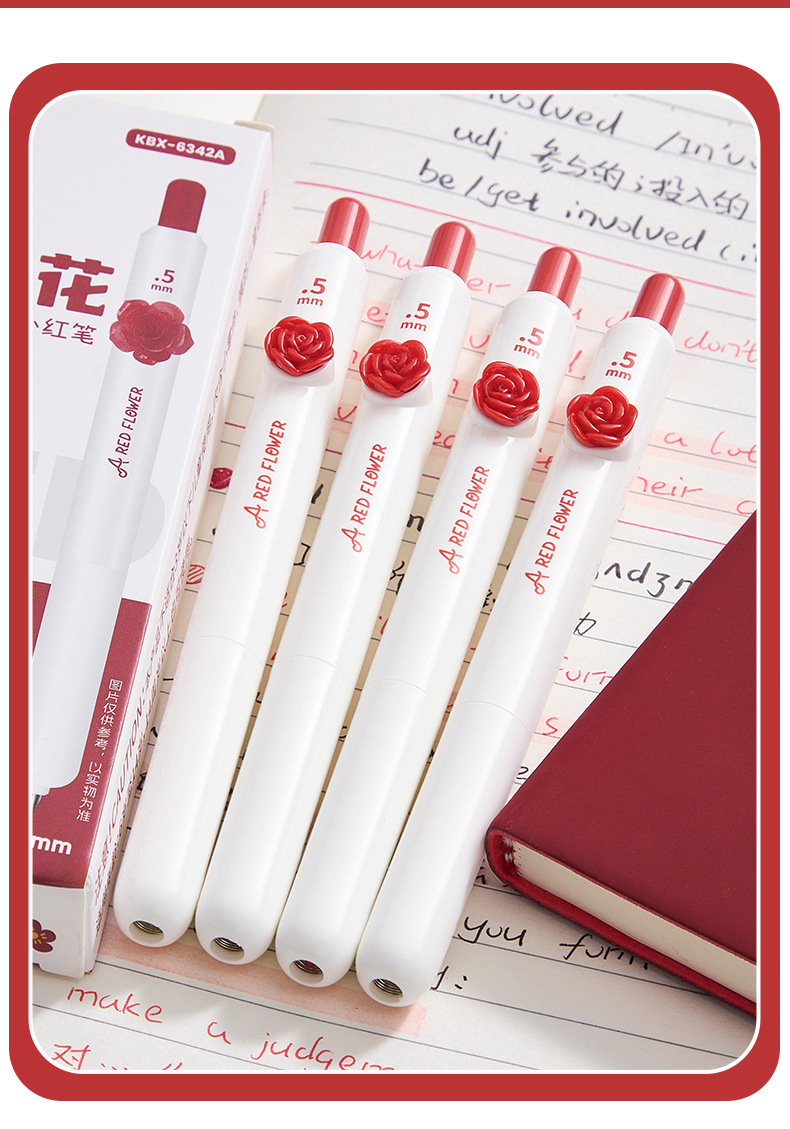 작은 붉은 꽃 프레스 젤 펜 꽃 패치 포켓 펜 높은 색상 가치 펜 학생 테스트 빠른 건조 브러시 펜스토어 가기