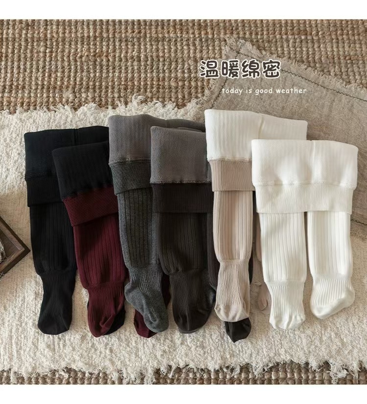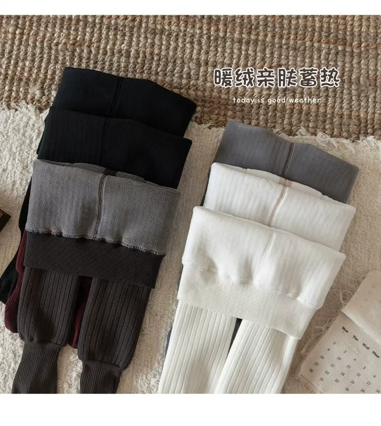 여자 레깅스 겨울 기모 두꺼운 단색 아우터 착용 모든 아기 학생 원피스 따뜻한 어린이 팬티 스타킹