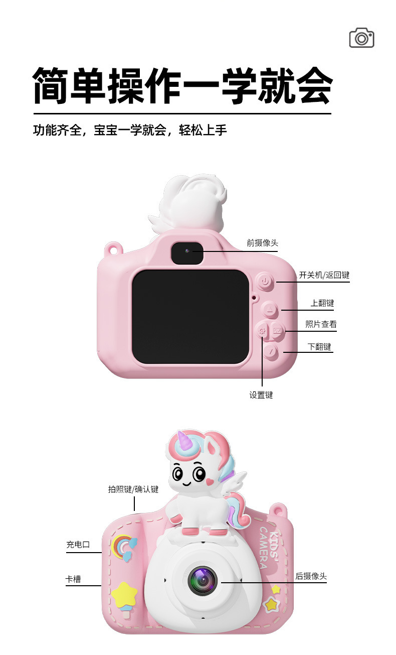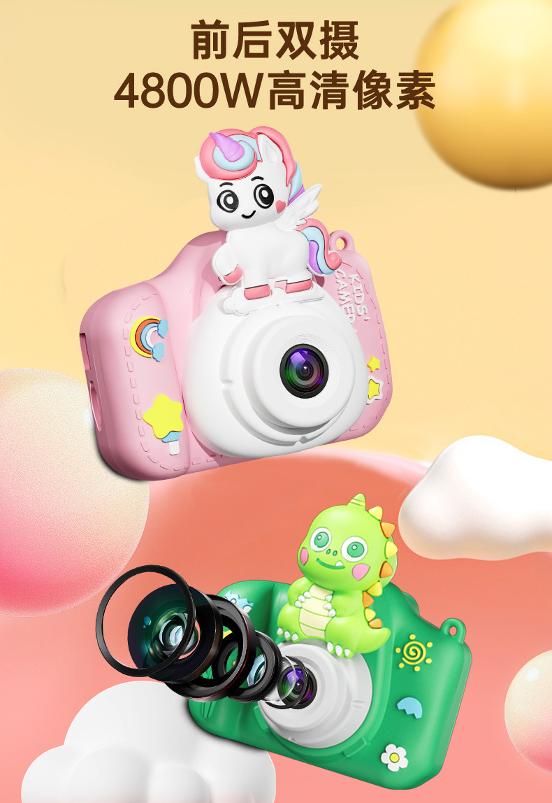 국경 새로운 고화질 더블 카메라 실리콘 세트 어린이 만화 디지털 카메라 장난감 어린이 생일 선물 카메라스토어 가기