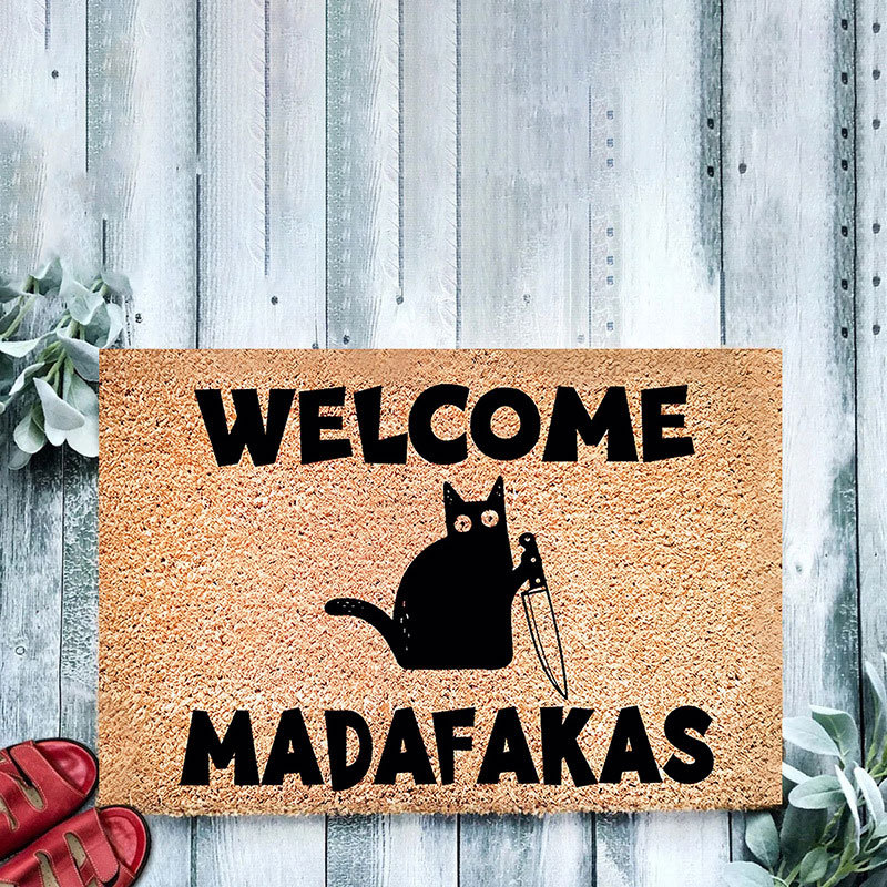 TEMU 크로스보더 칼을 든 고양이 바닥 매트 벨벳 미국식 현관 전체 카펫 귀여운 동물 문구 아마존