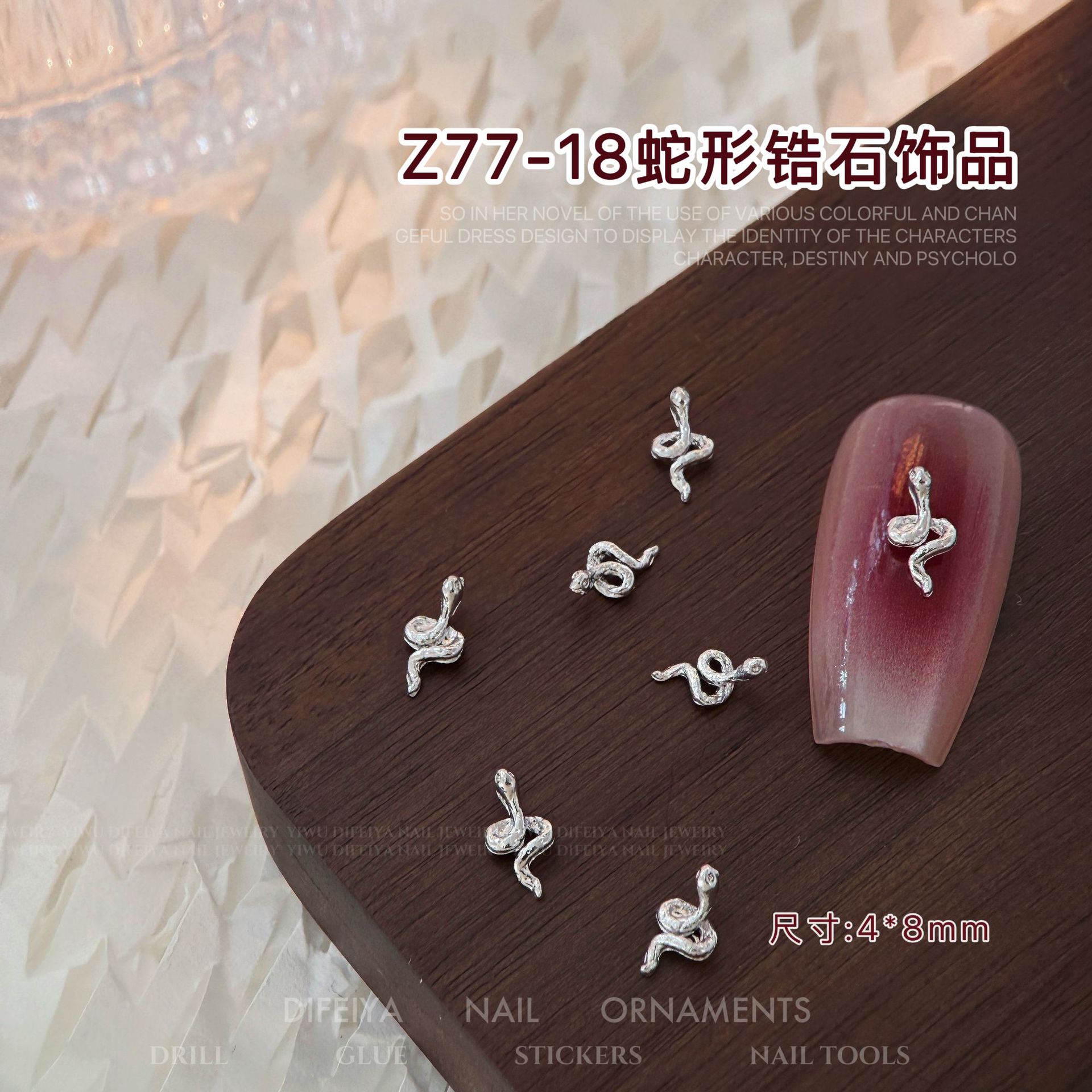 사이버 연예인 뱀 모양의 네일 아트 쥬얼리 년 뱀 새 도착 합금 뱀 빛 럭셔리 골드 및 실버 금속 랩 네일 액세서리스토어 가기