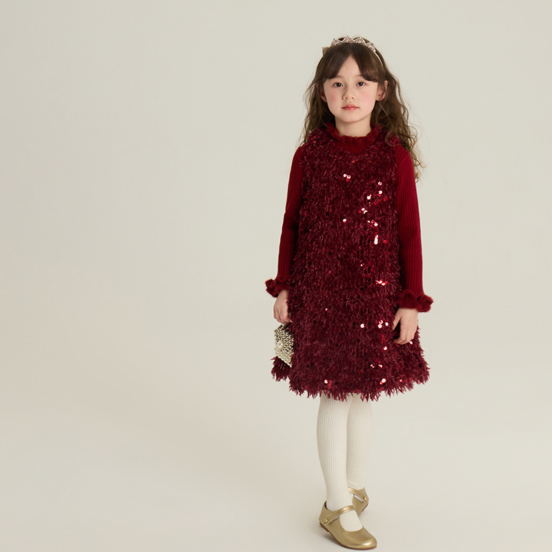 Elmo Beibei 겨울 퀼트 소녀 스팽글 공주 드레스 조끼 드레스 어린이 새해 스파클링 드레스