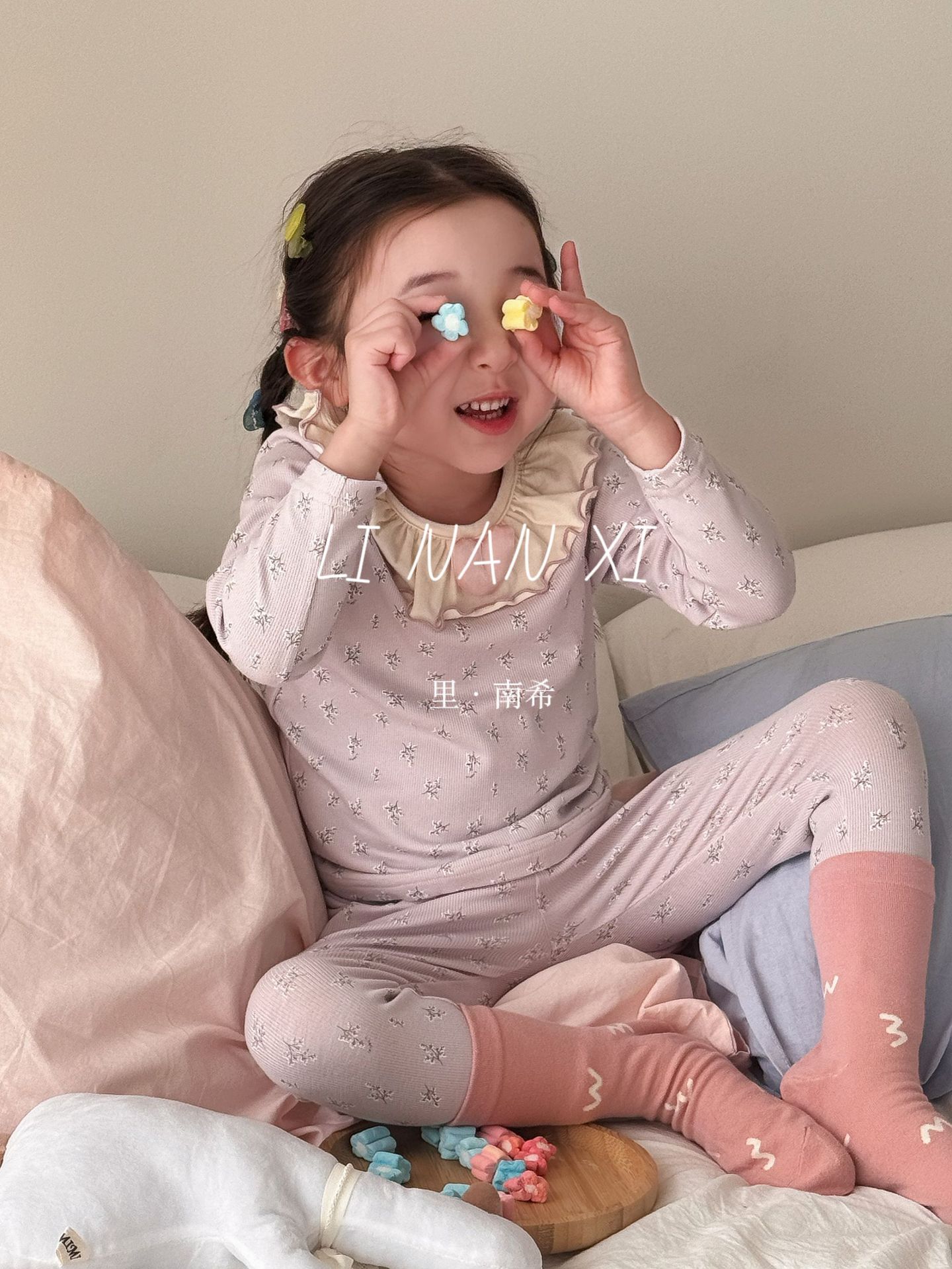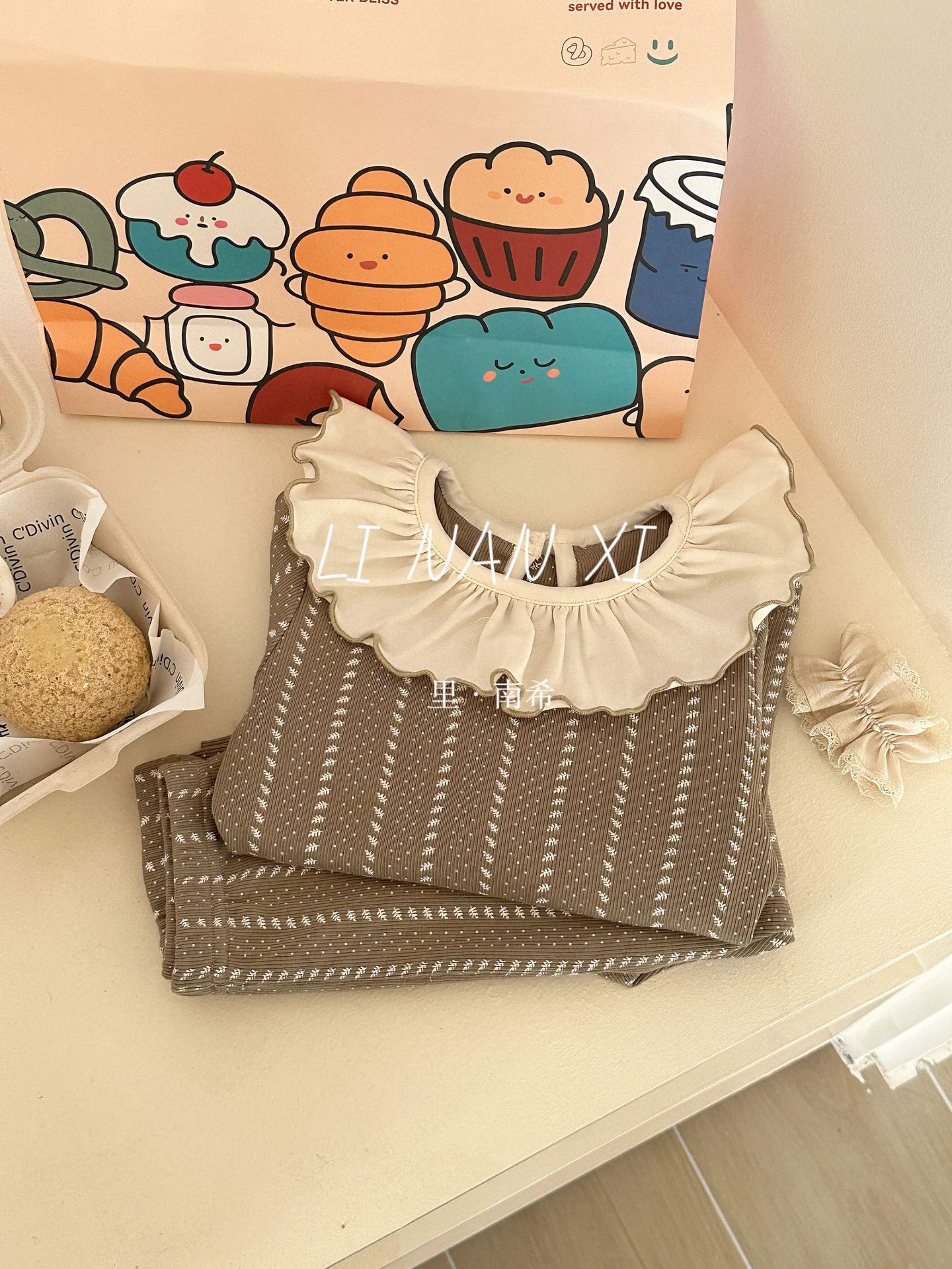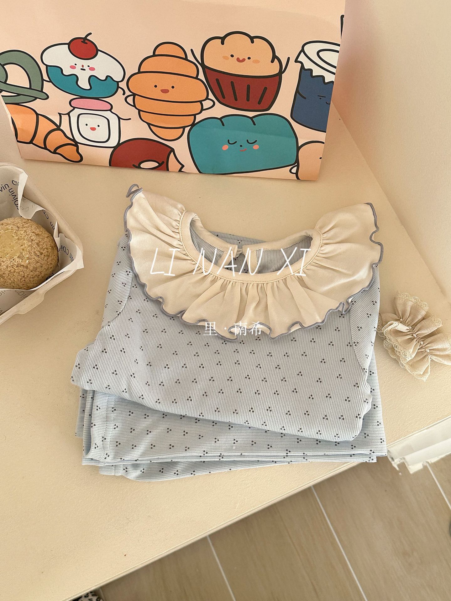 어린이 달콤한 곰팡이 레이스 홈웨어 세트 25 가을 새 아기 공주 스타일 잠옷과 잠옷 85012
