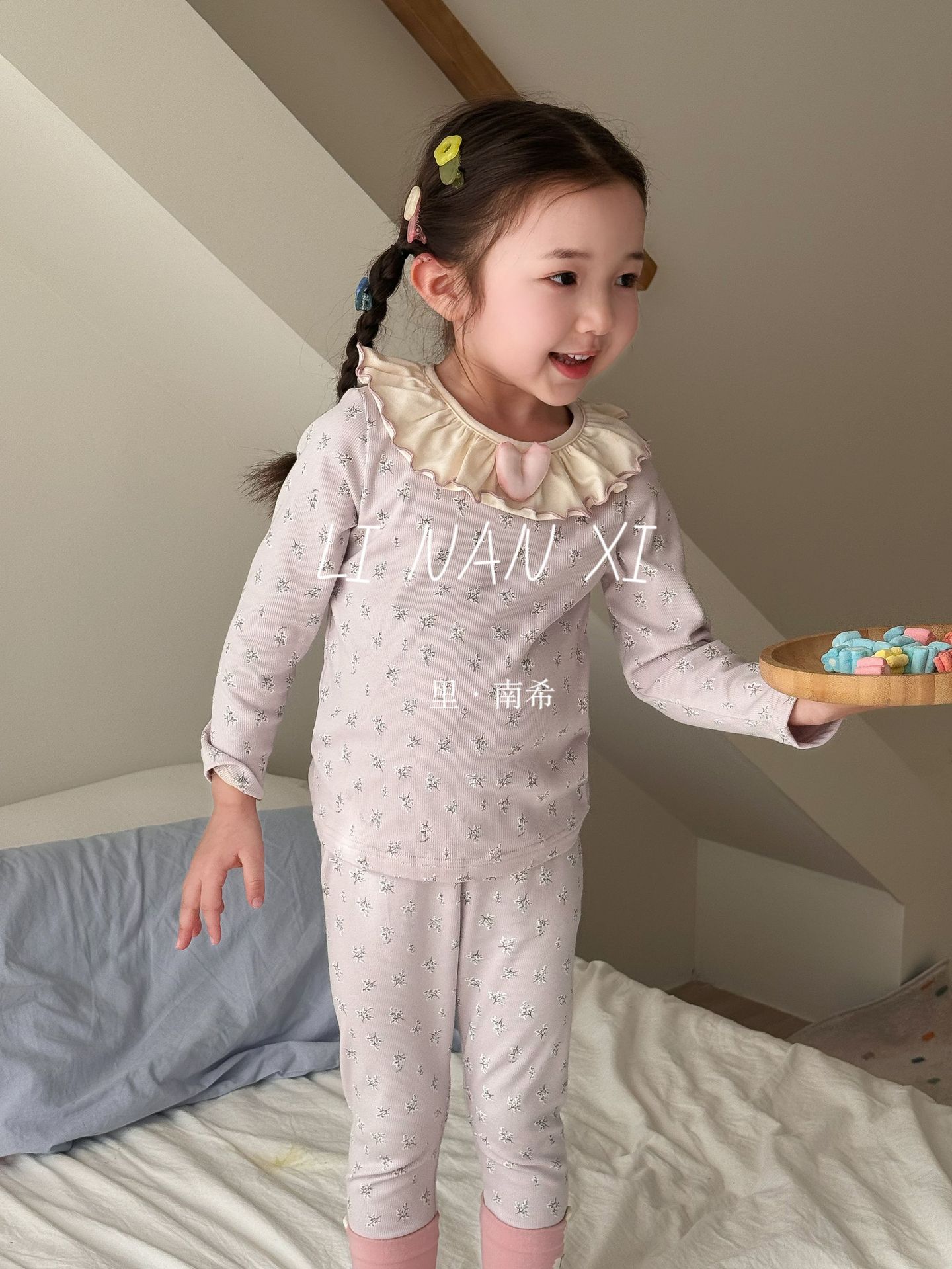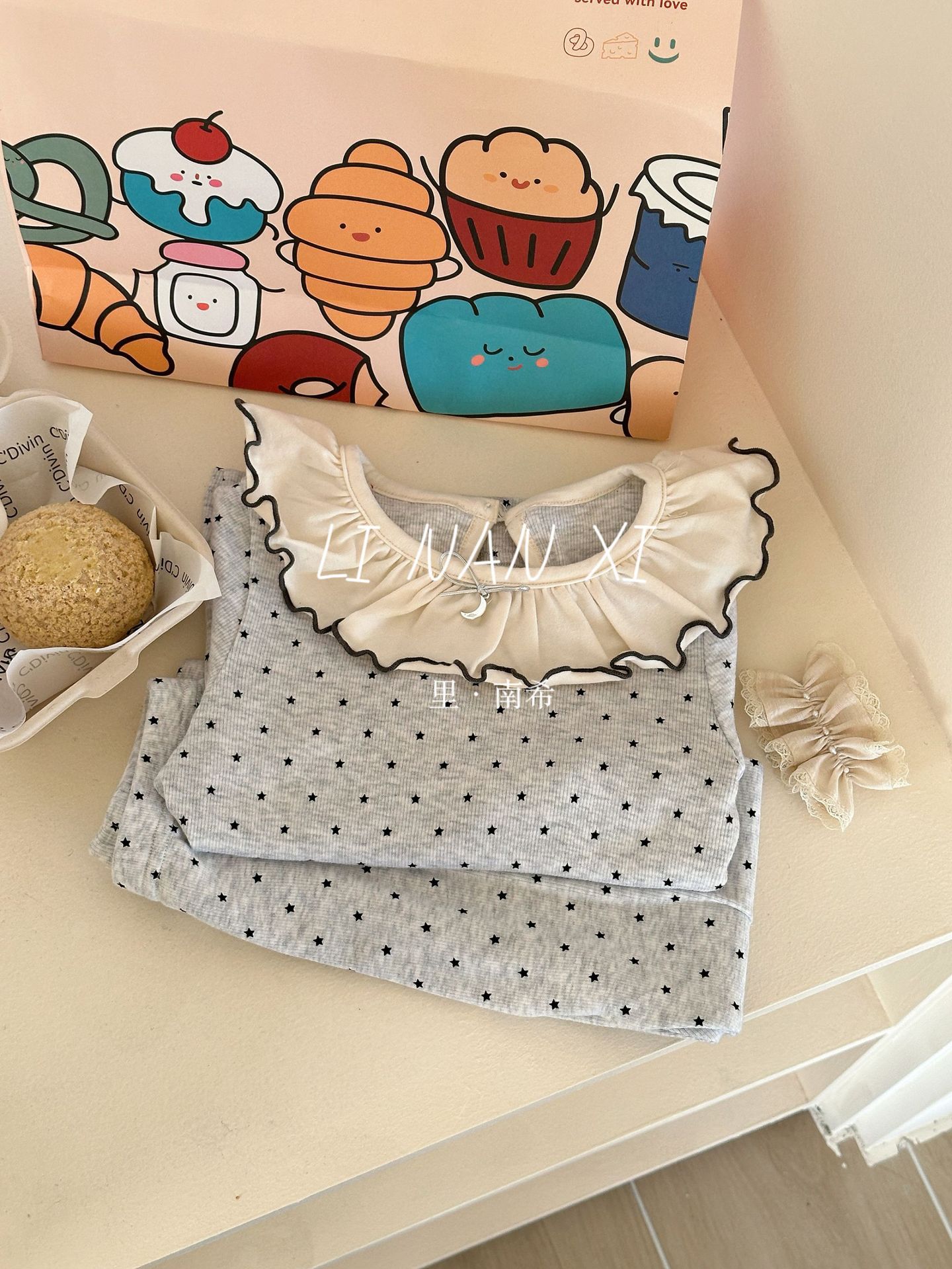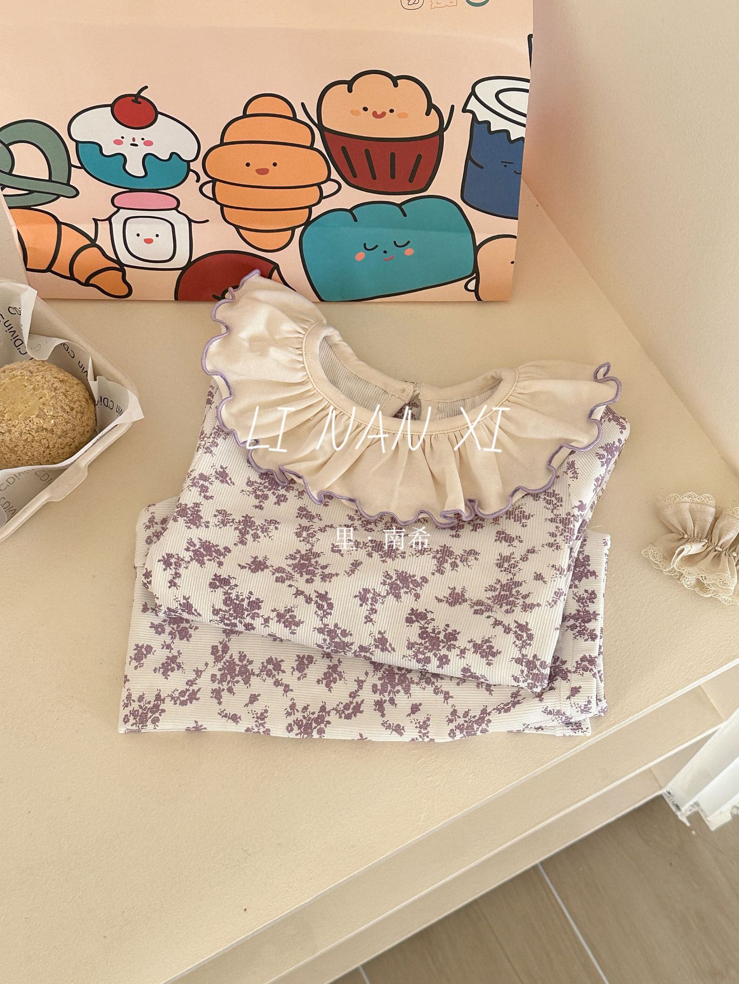 어린이 달콤한 곰팡이 레이스 홈웨어 세트 25 가을 새 아기 공주 스타일 잠옷과 잠옷 85012