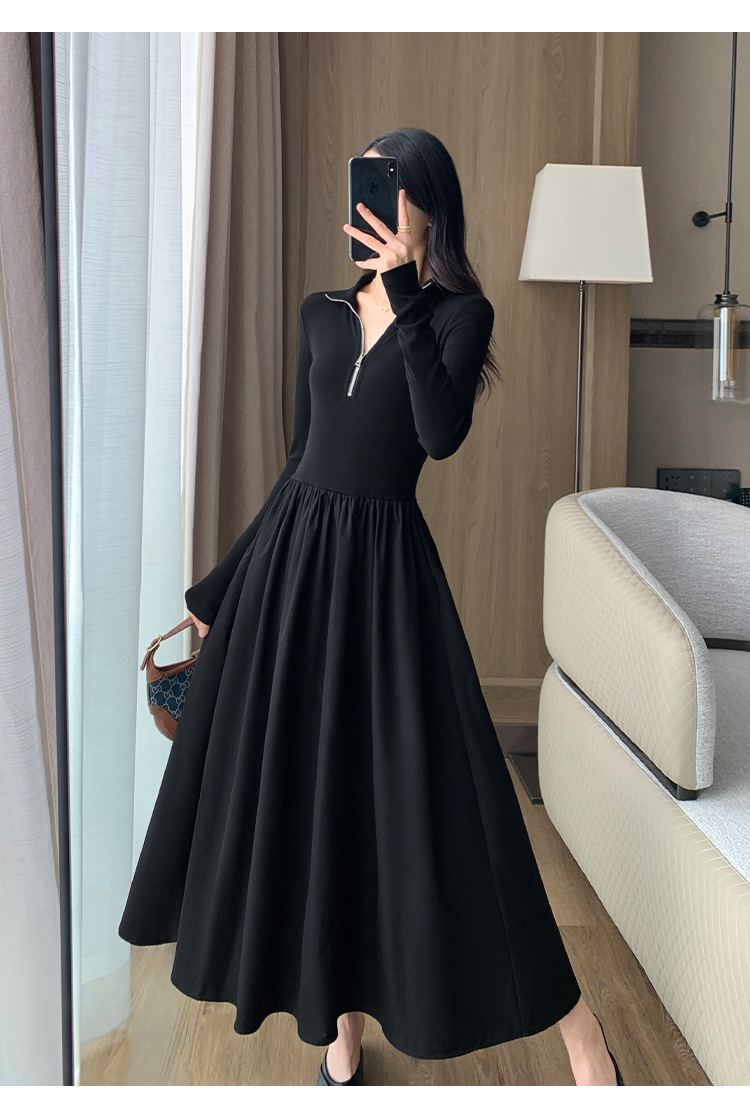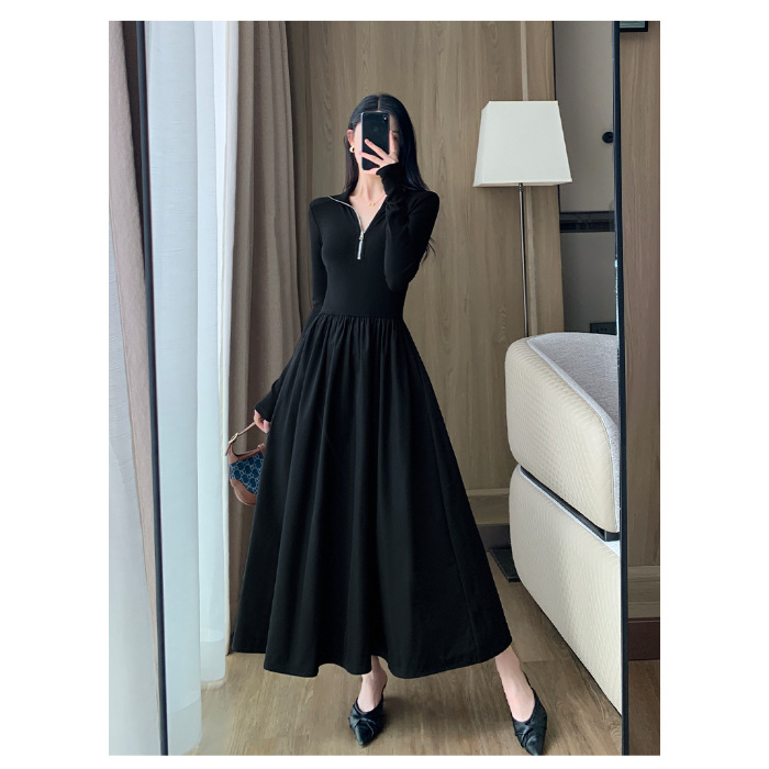 헵번 스타일 우아한 슬림베이스 여성 원피스 블랙 하이 엔드 프랑스 스타일 가을과 겨울 2024 새로운 도착