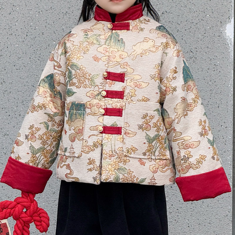 어린이 중국 스타일 국가 스타일 코트 2024 겨울 새 기모 두꺼운 소년 세트 칼라 탑스토어 가기