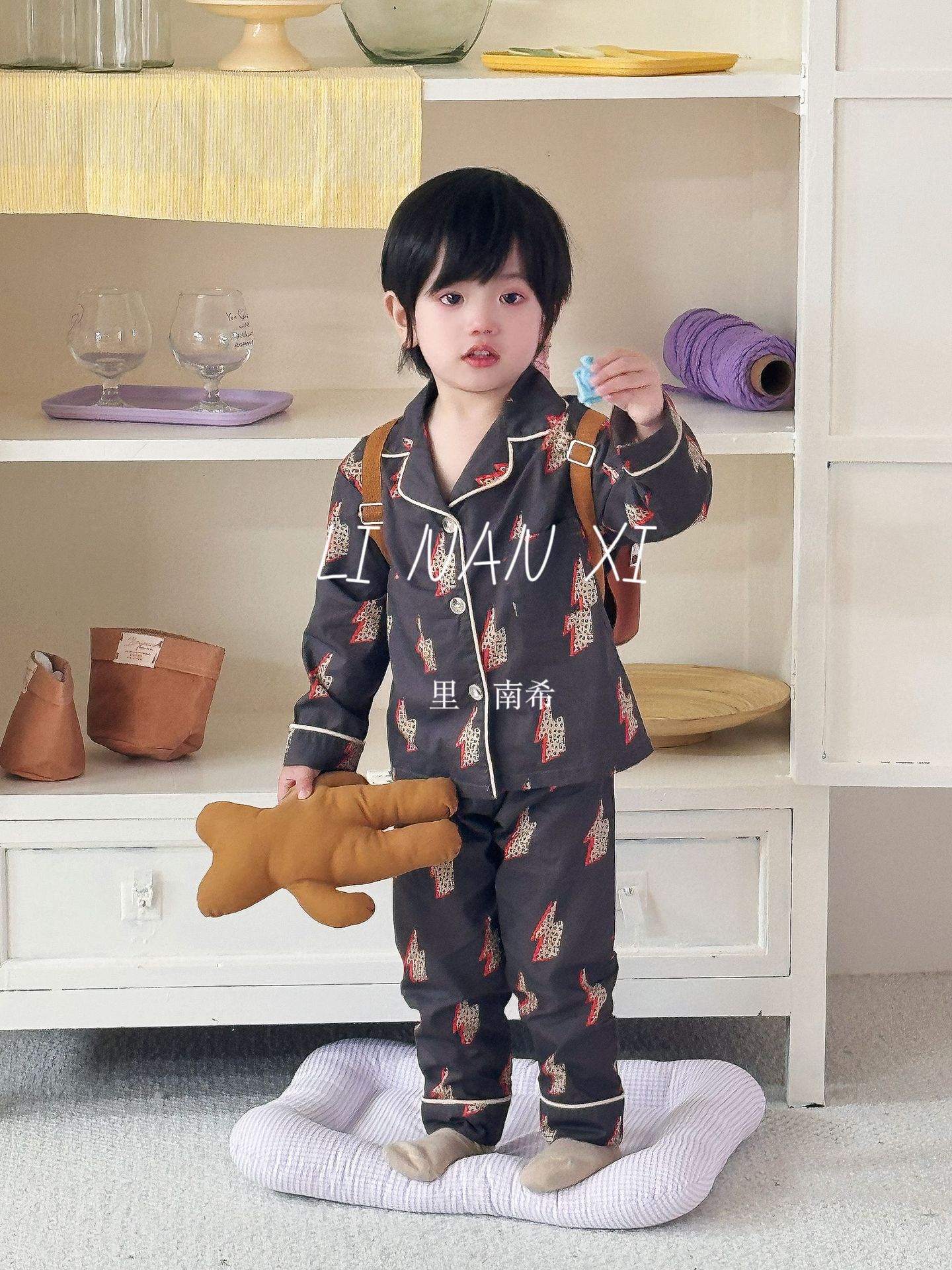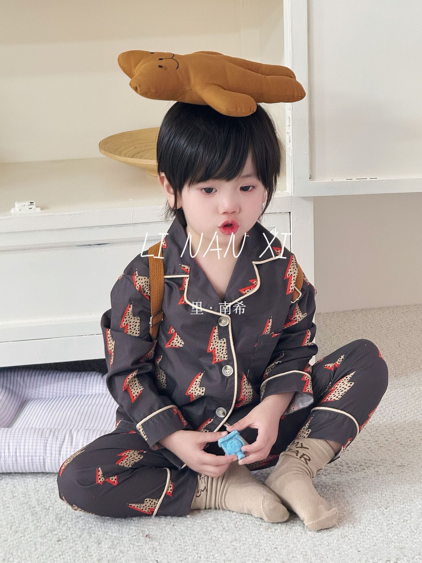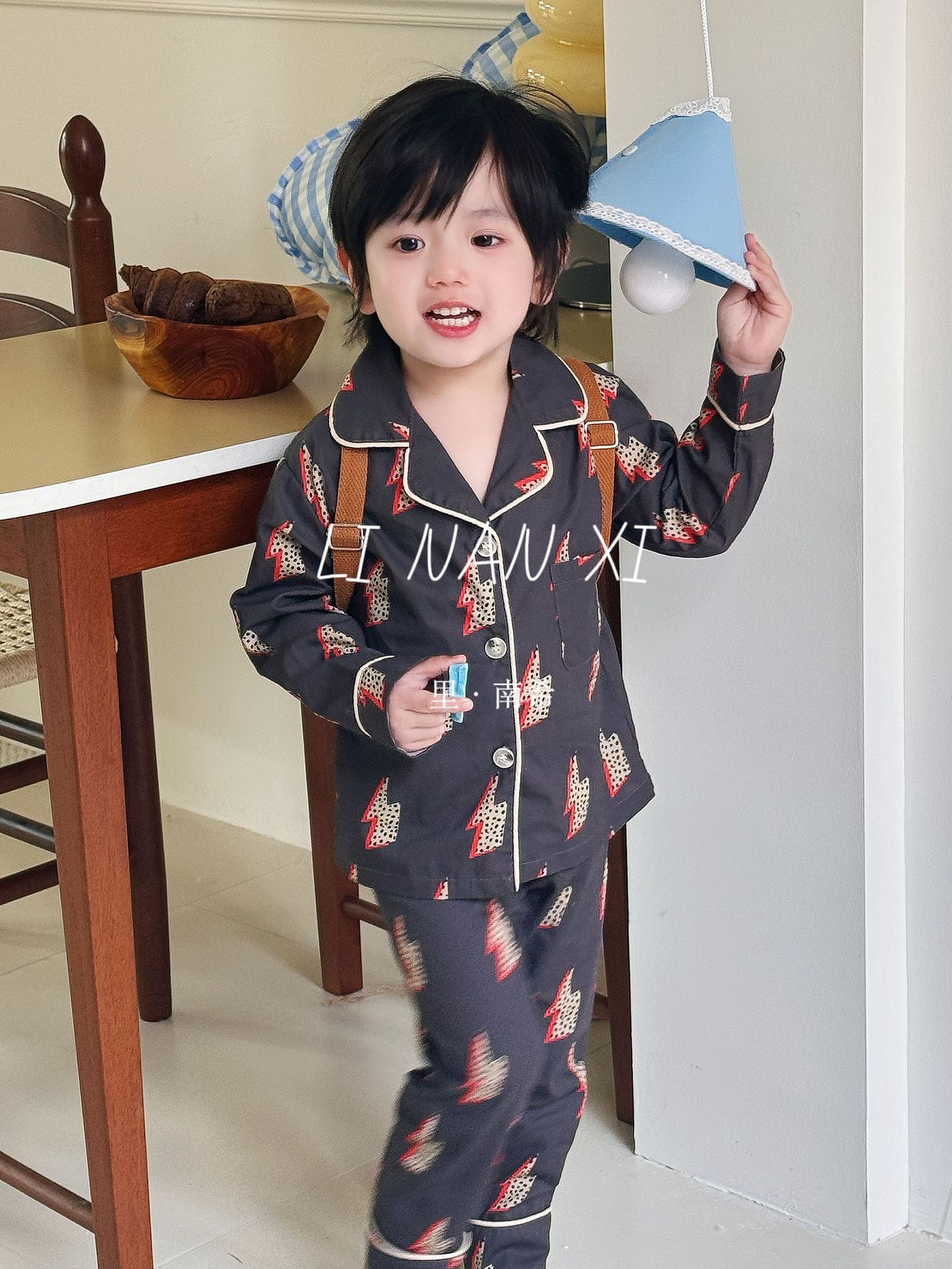 어린이 옷깃 홈 옷 세트 25 년 봄 소년 한국 만화 자수 포켓 잠옷 85011