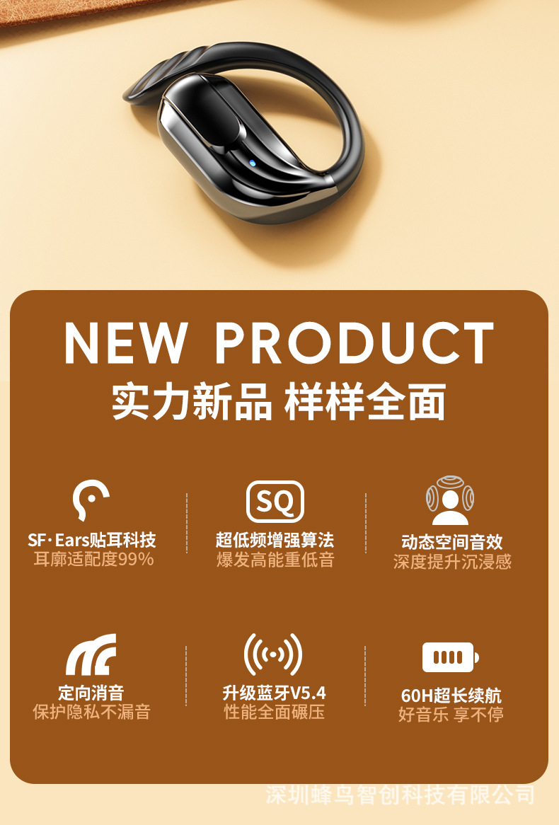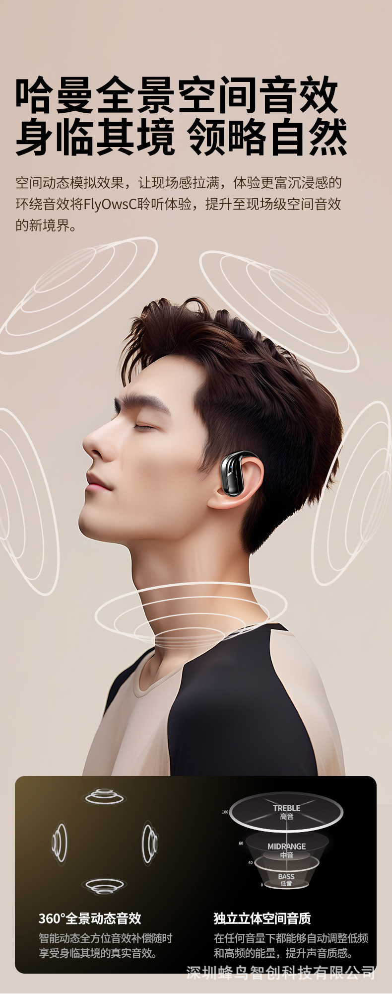 2025년 신형 자체 디자인 OWS 무선 블루투스 이어폰, 귀걸이형 비삽입형 TWS, 초장시간 배터리 수명 스포츠 이어폰