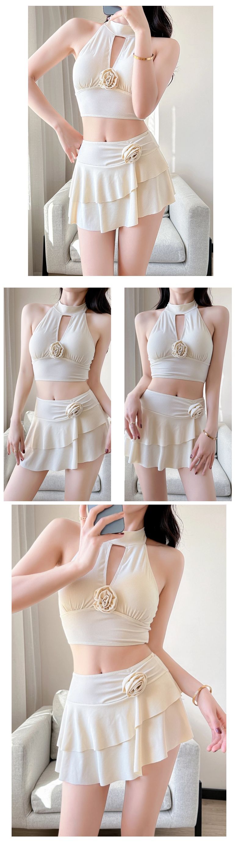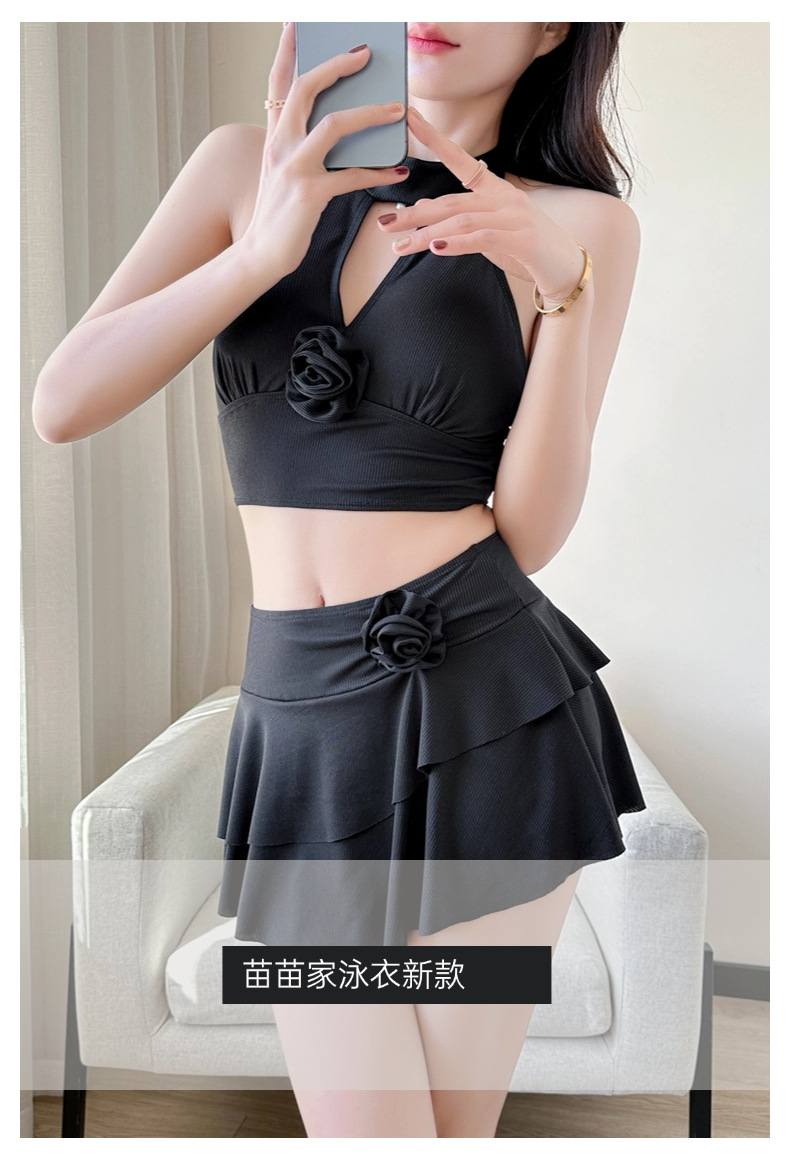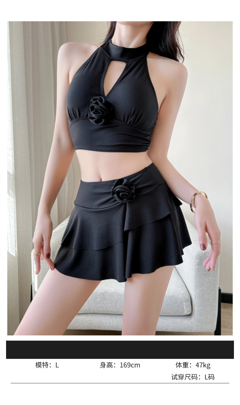 [달콤한 신호] 스플릿 비키니 스플릿 3 피스 섹시 로즈 온천 그물 레드 수영복 여성