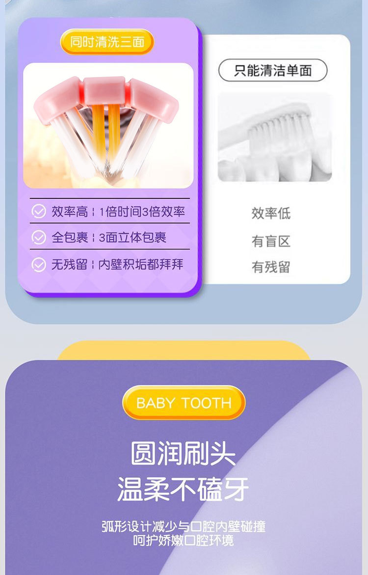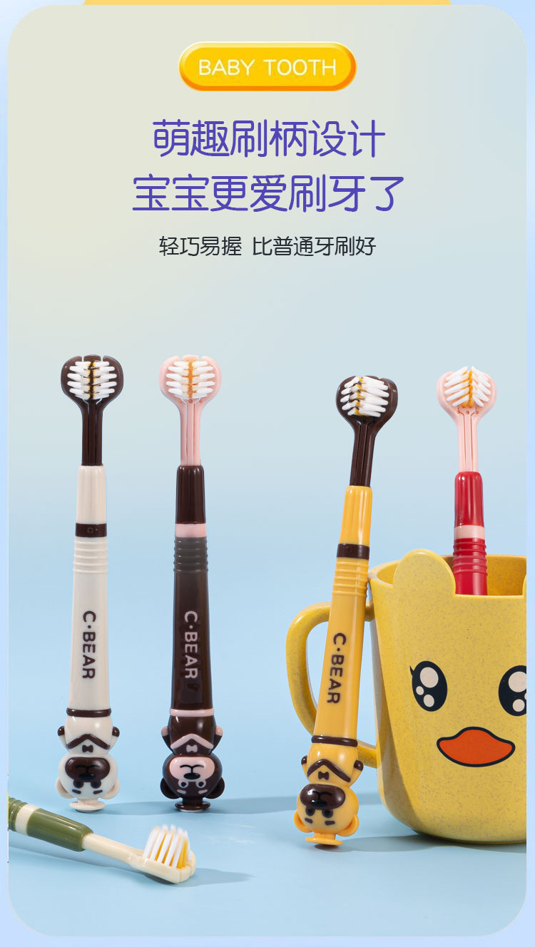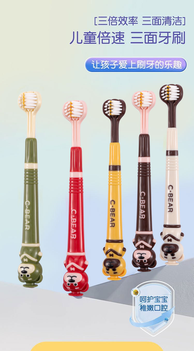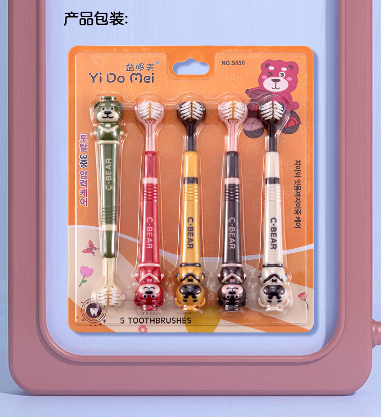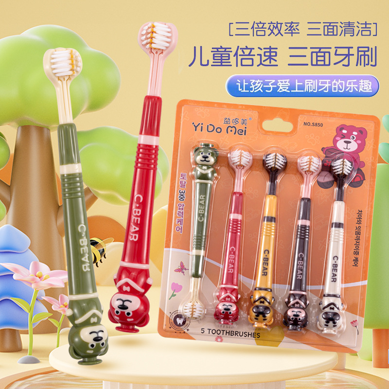 [5 팩] 여도 메이 어린이 3 면 래핑형 3 ∼ 15 세 초등생 특수 연화머리 미끄럼 방지 칫솔