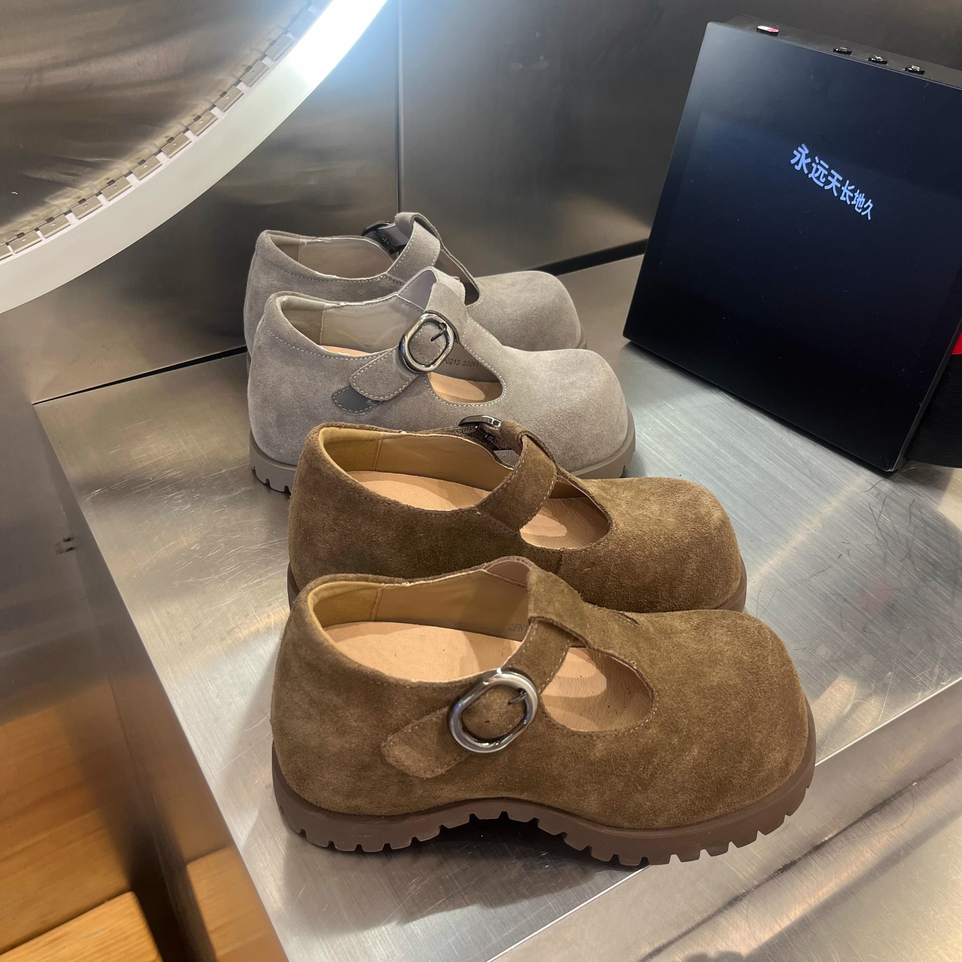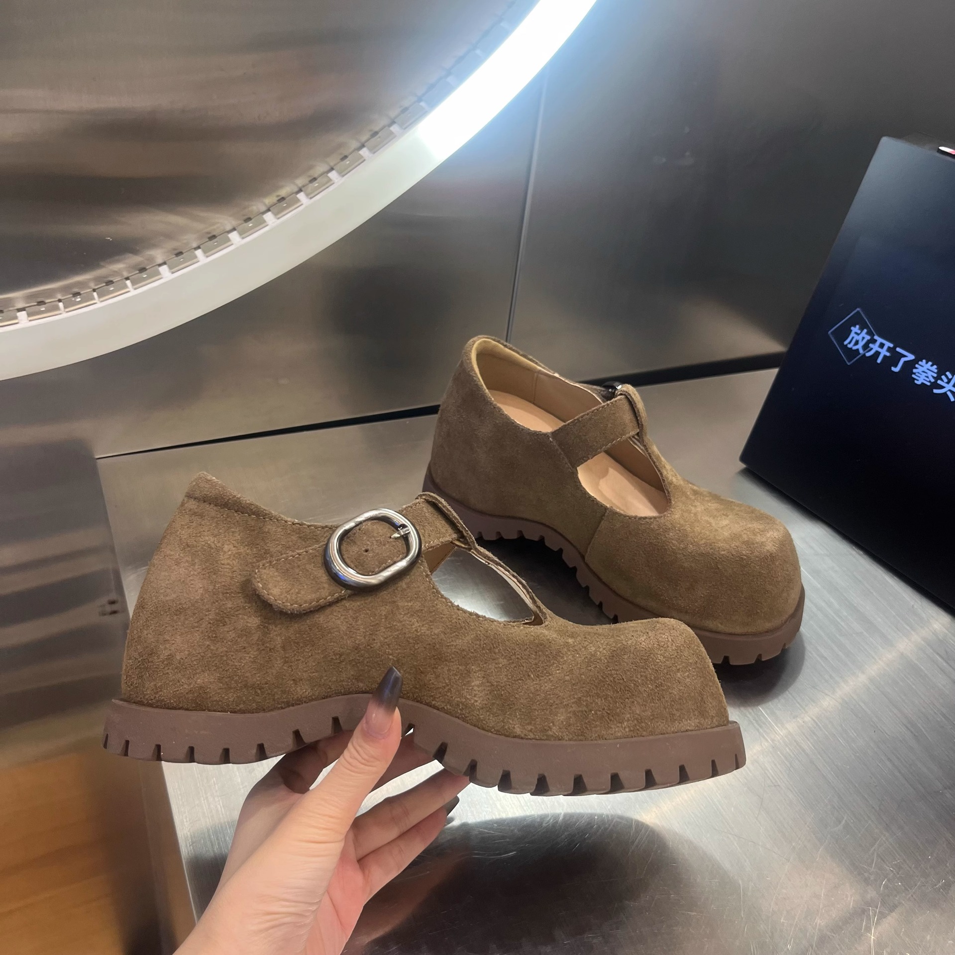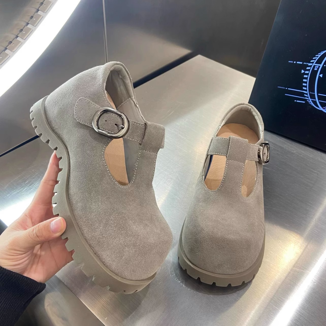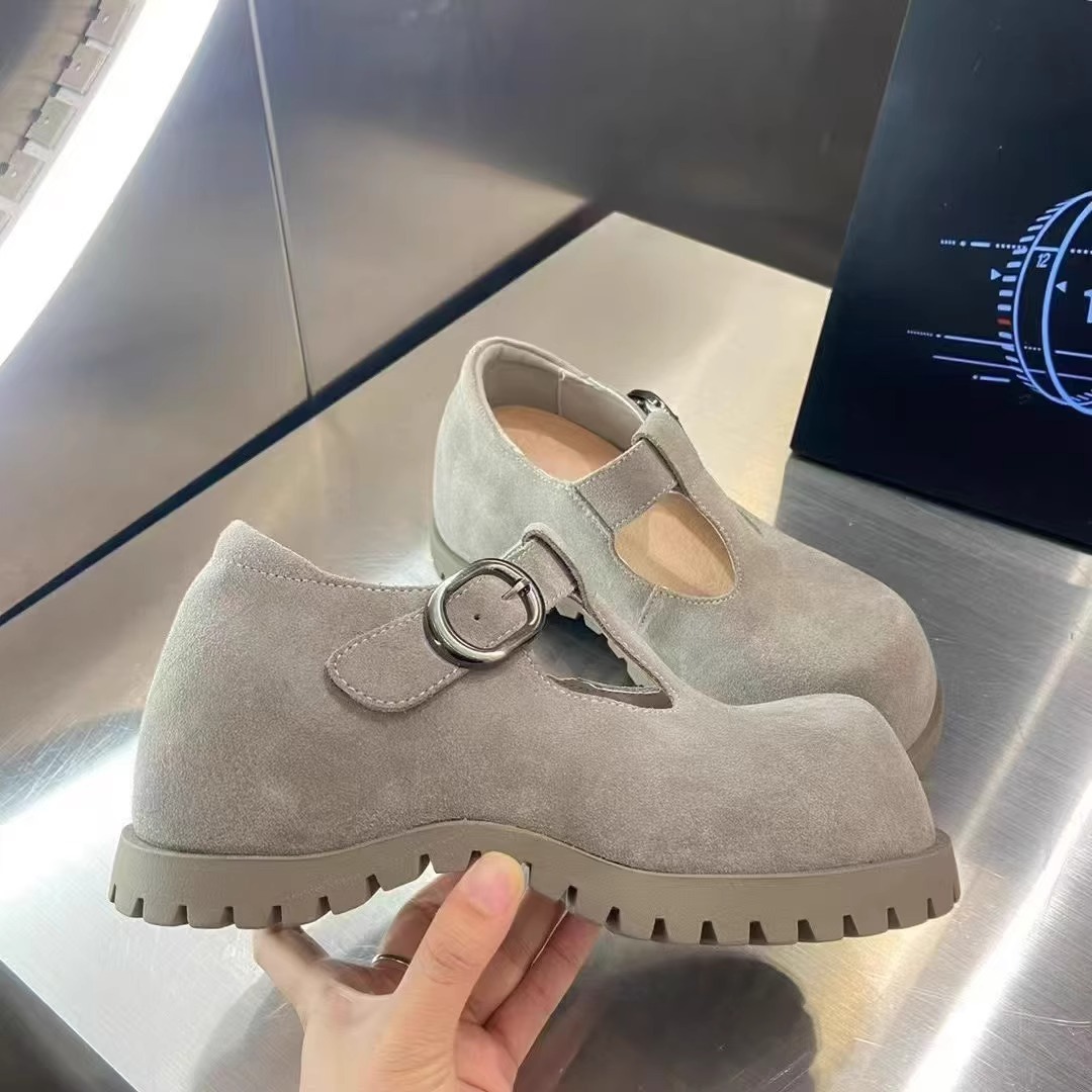 2024 새로운 레트로 얕은 입 캐주얼 의류 정품 가죽 메리 제인 신발 여성용 올매치 편안한 부드러운 밑바닥 싱글 레이어 신발 버클