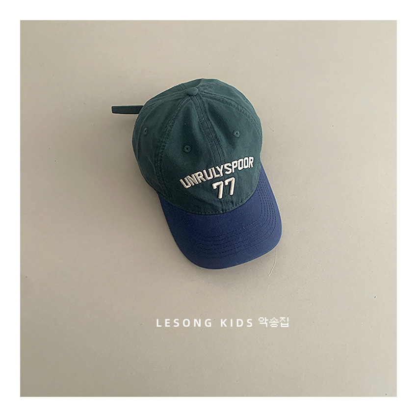 2025春儿童韩系数字77拼色棒球帽