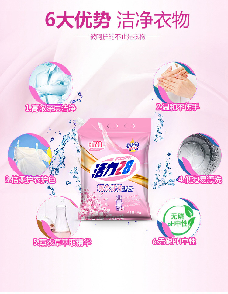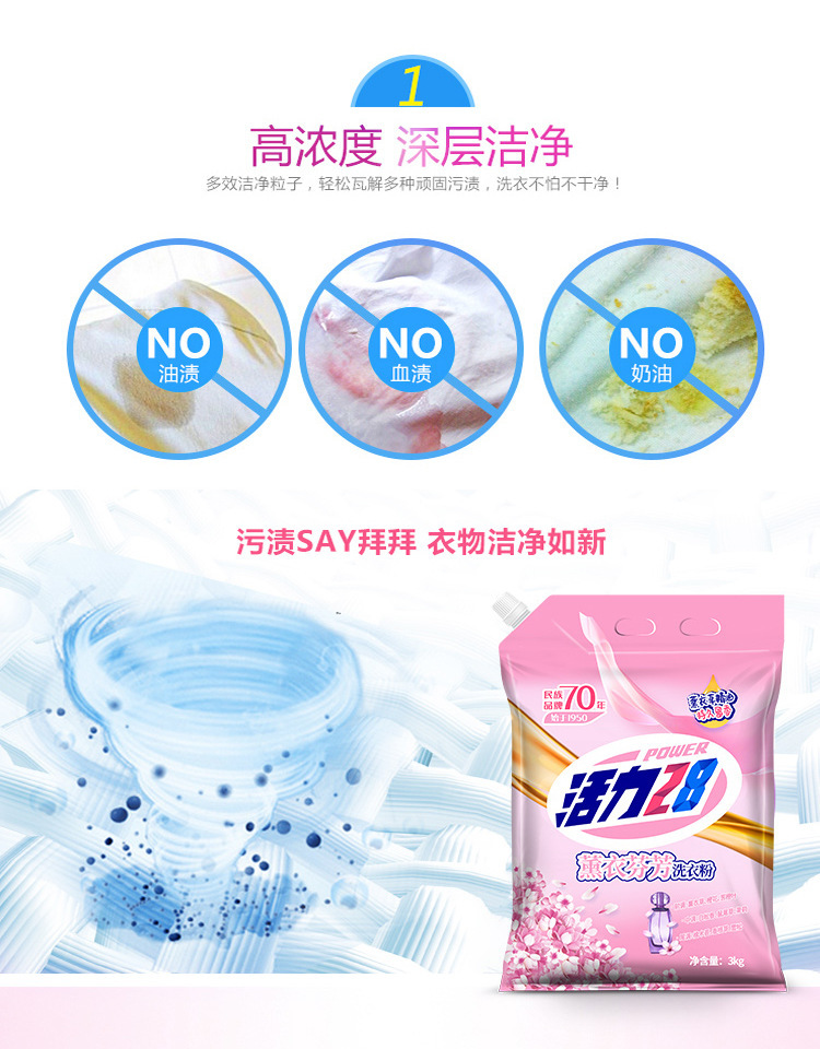 Vigor 28 세척 분말 도매 훈증 향수 3kg 가정용 대형 패키지 색상 보호 깊은 깨끗한 낮은 거품 쉽게스토어 가기