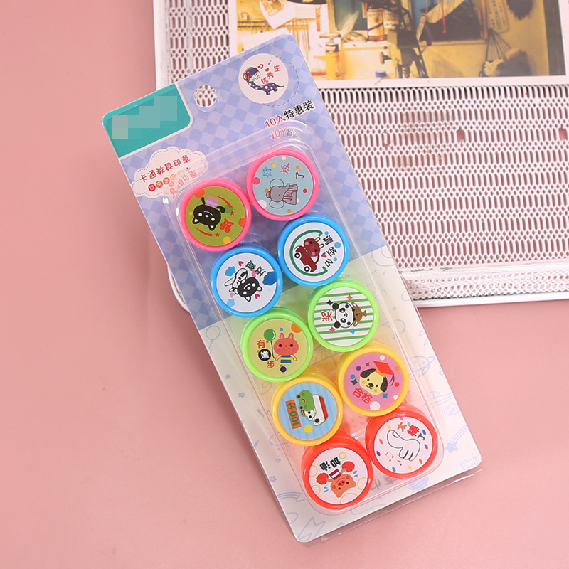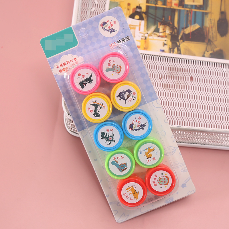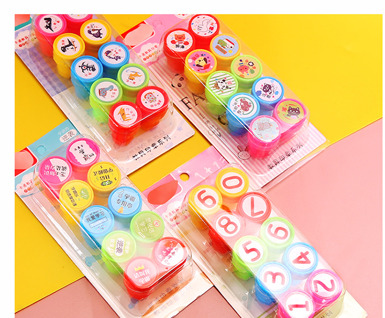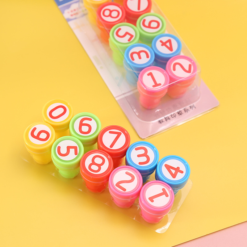 10 어린이 만화 인감 세트 플라스틱 장난감 미니 인감 수학 깨달음 추가 및 뺄셈 교육 보조 도구 도매