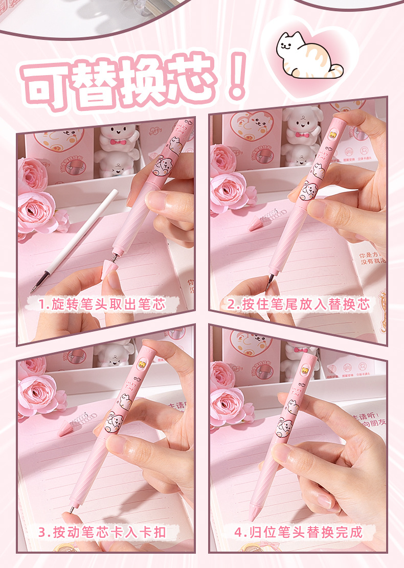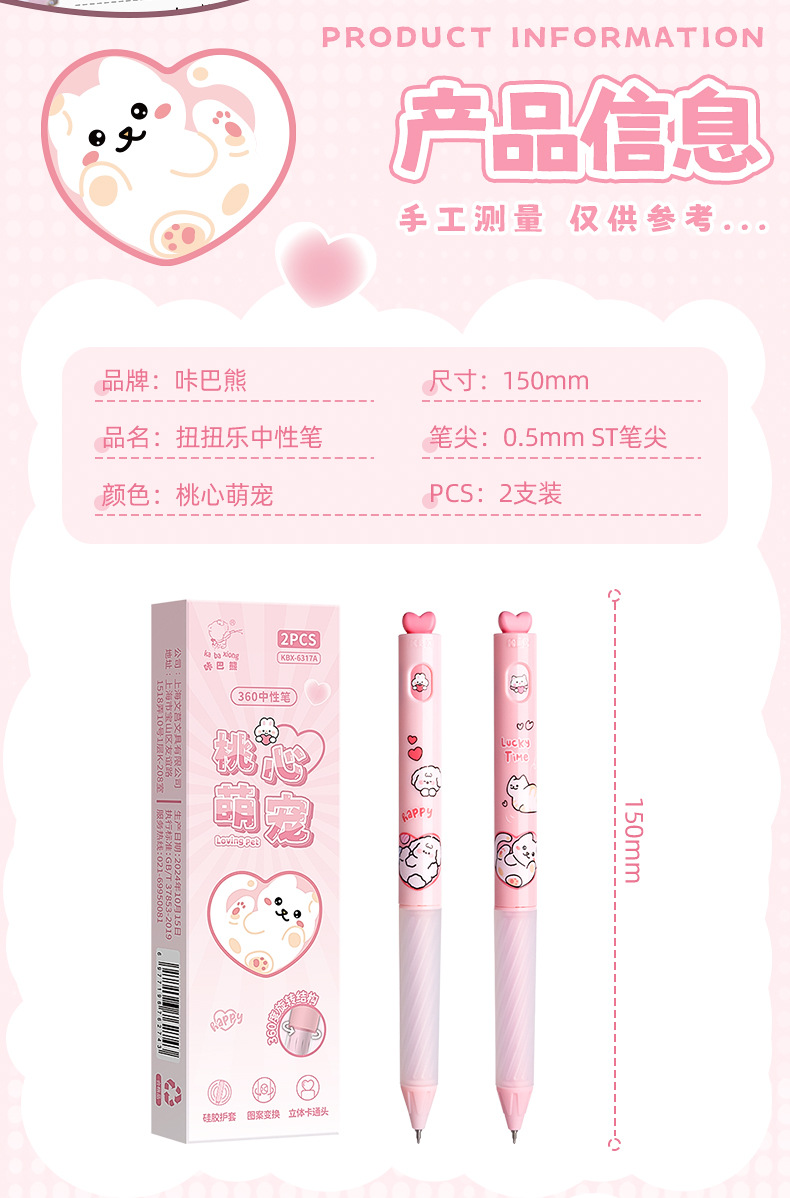 트위스트 트위스트 턴 음악 젤 펜 높은 컬러 값 스핀 아웃 코어 귀여운 사랑 귀여운 애완 동물 학생 빠른 드라이 브러시 펜 블랙