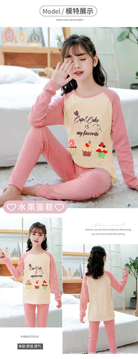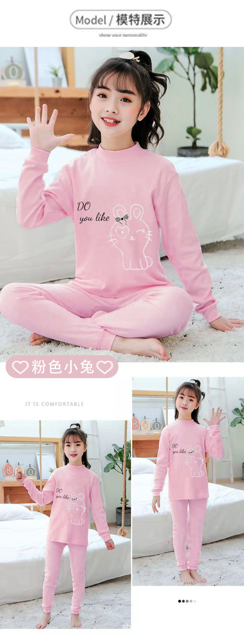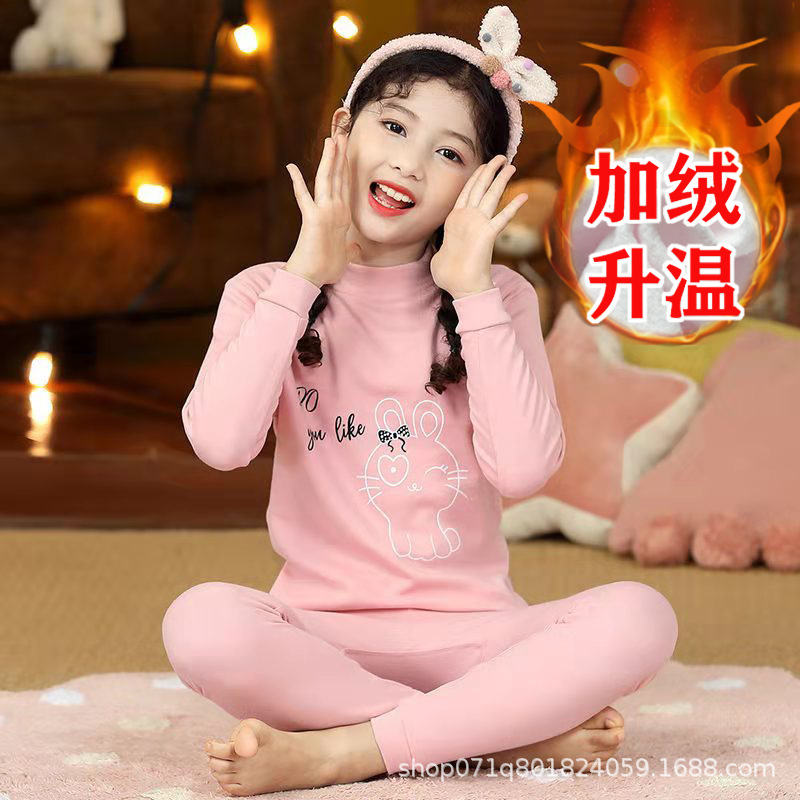 [밀크 실크 샌딩] 큰 아이들을위한 소녀 가을 겨울 따뜻한 바닥 셔츠 소녀 얇은 가을 옷 긴 바지 세트