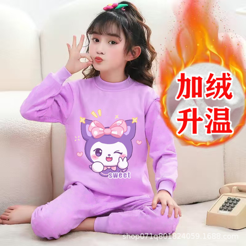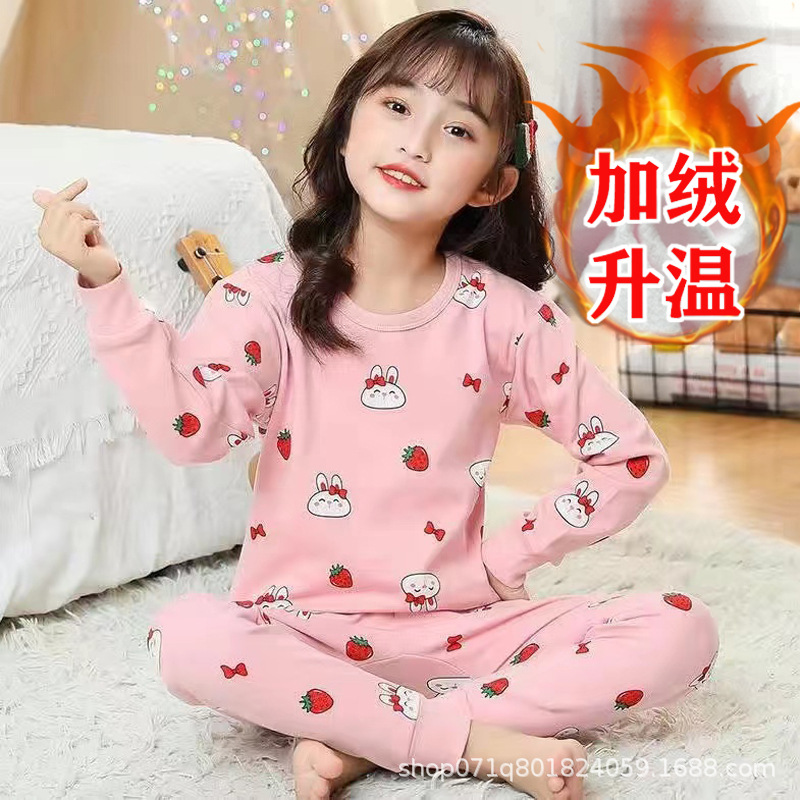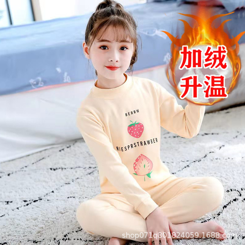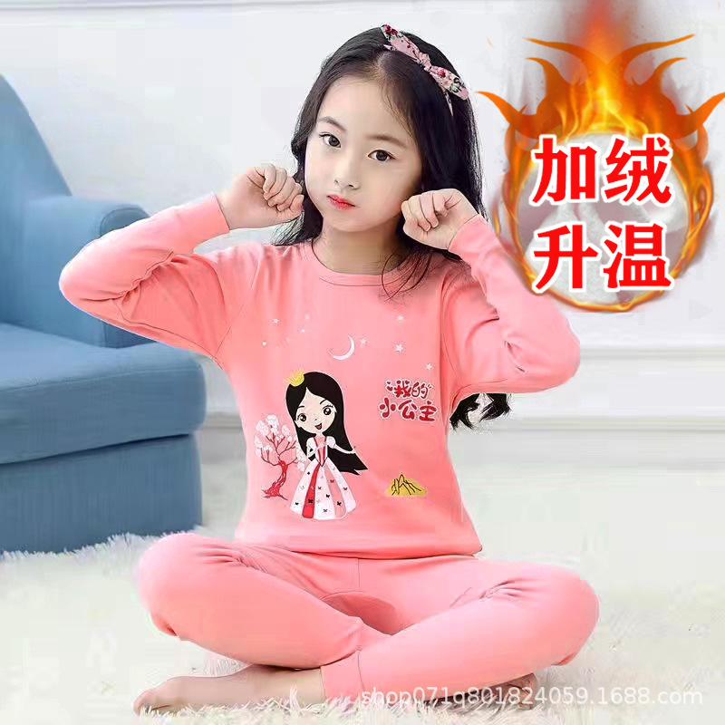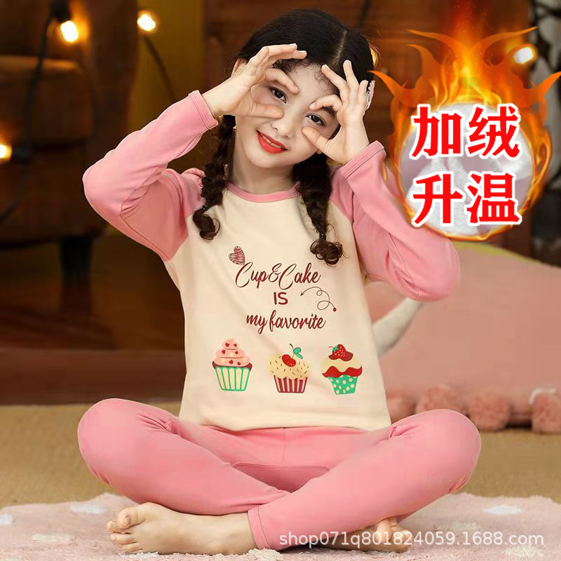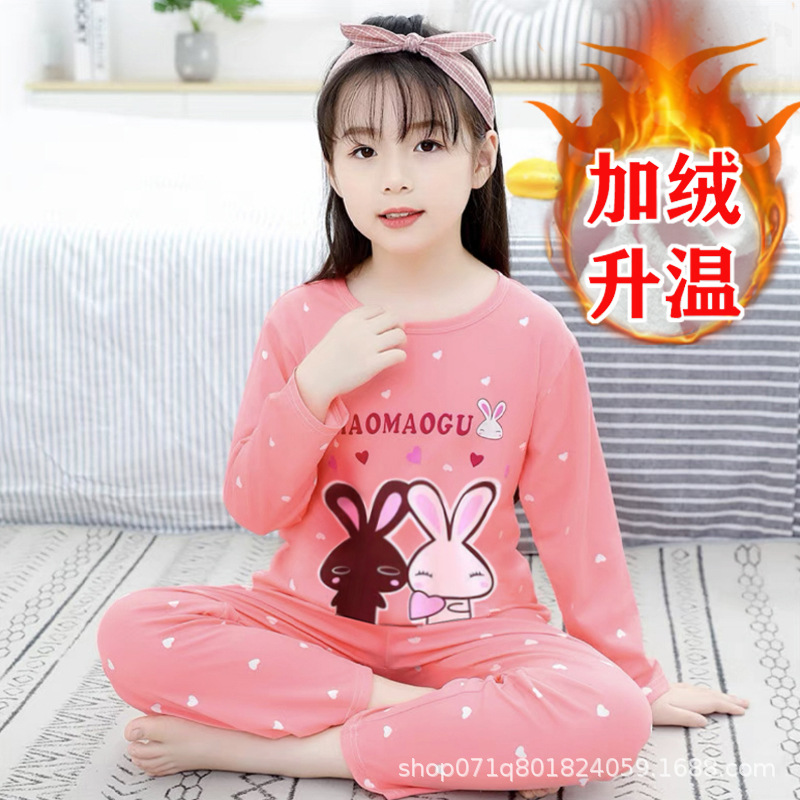[밀크 실크 샌딩] 큰 아이들을위한 소녀 가을 겨울 따뜻한 바닥 셔츠 소녀 얇은 가을 옷 긴 바지 세트스토어 가기