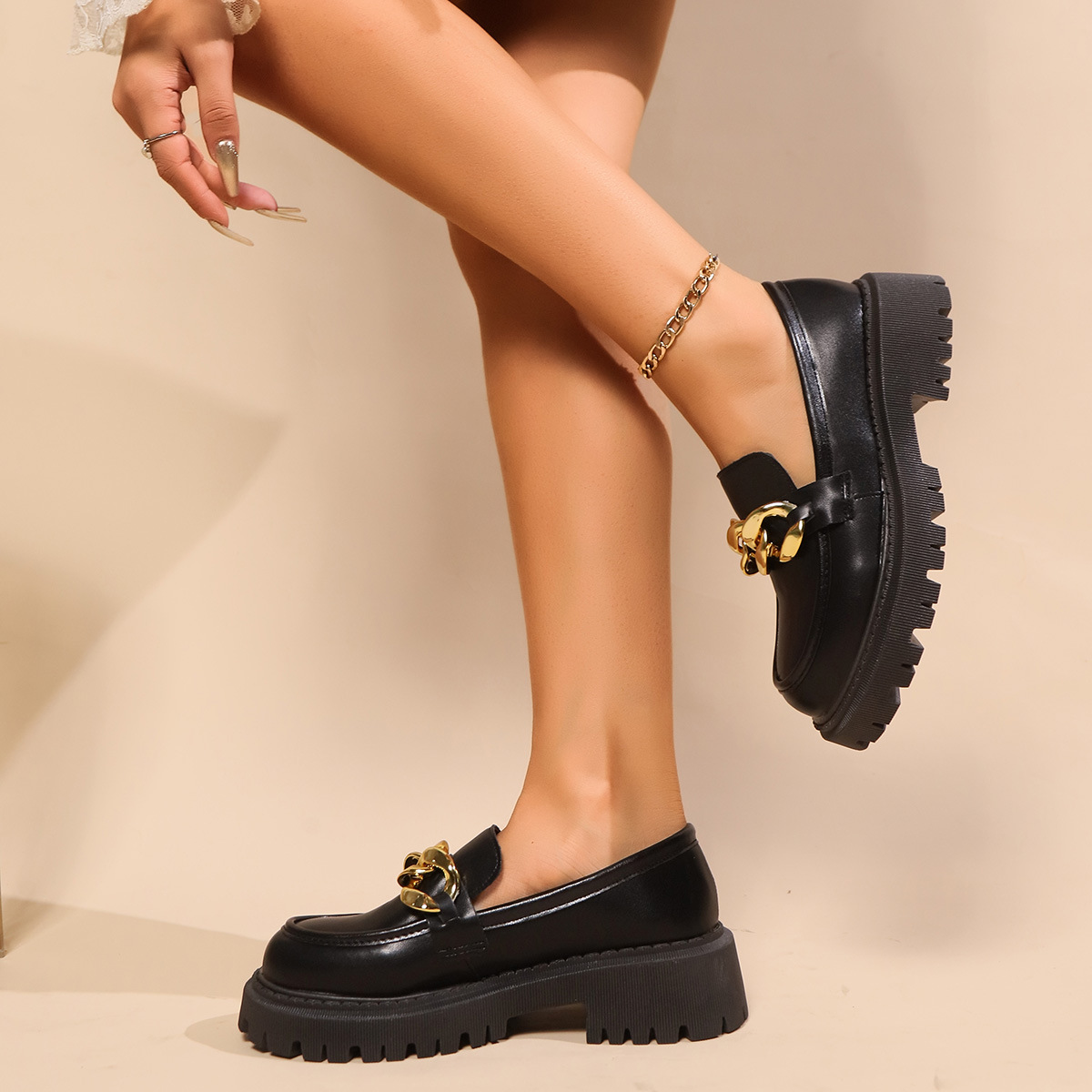 유럽과 미국의 대외 무역 플러스 사이즈 로퍼 여성의 2024 봄과 가을 새로운 여성 신발 라운드 헤드 세트 발 두꺼운 밑바닥 캐주얼 신발 여성스토어 가기