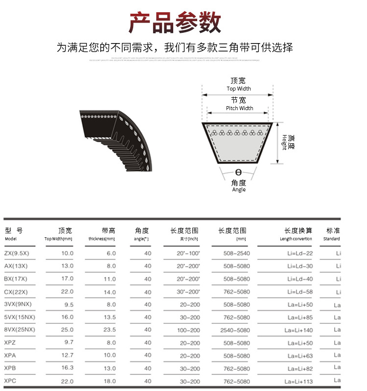 V-벨트 벨트 A838Li A850 A860 A864 A870 A880 A889 드라이브 벨트 A