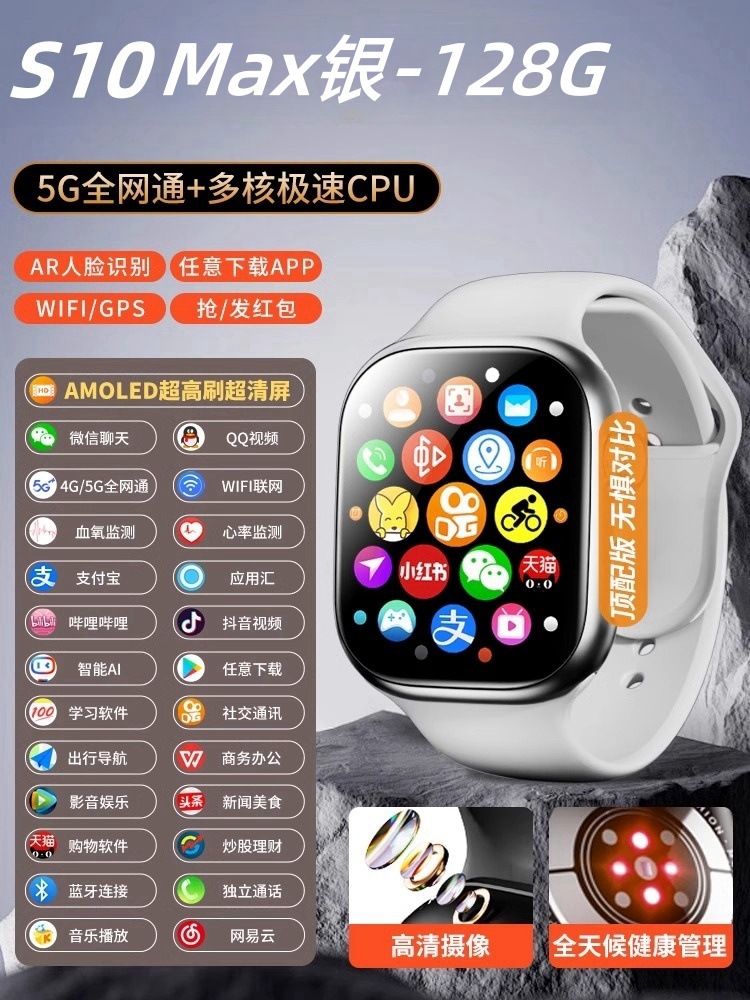 • [S10Max Silver-128G 버전] HD 카메라_AMOLED 울트라 클리어 대형 스크린_WiFi 연결_WeChat QQ Douyin_Smart Island_Ren