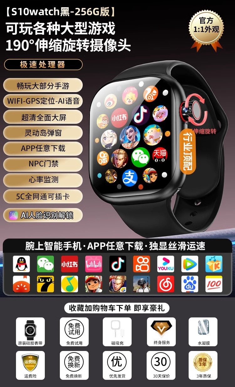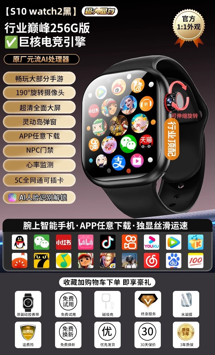 • [S10ultra2 black-256G 버전] 초고속 프로세서_다양한 대형 게임 플레이 가능_190 ° 텔레스코픽 회전 카메라_심박수 및 혈중 산소
