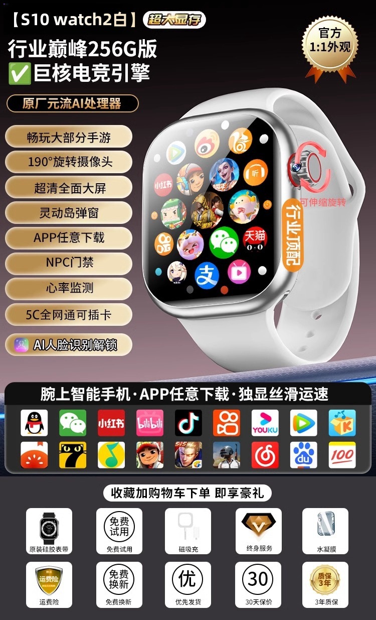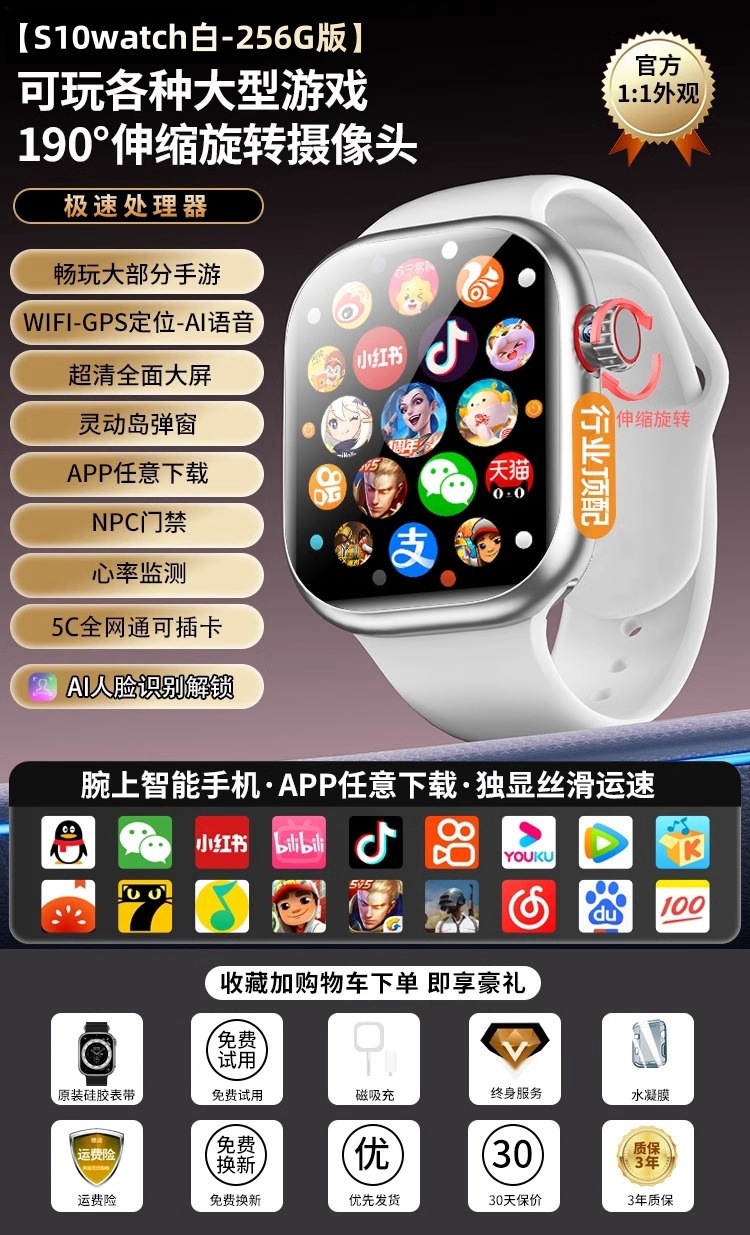 Huaqiang North Watch 스마트 플러그인 카드 스마트 폰 시계 성인 남성과 여성의 전화 시계 S10Watch스토어 가기