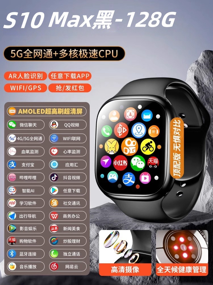 • [S10Max Black-128G 버전] HD 카메라_AMOLED 울트라 클리어 대형 스크린_WiFi 연결_WeChat QQ Douyin_Smart Island_Ren