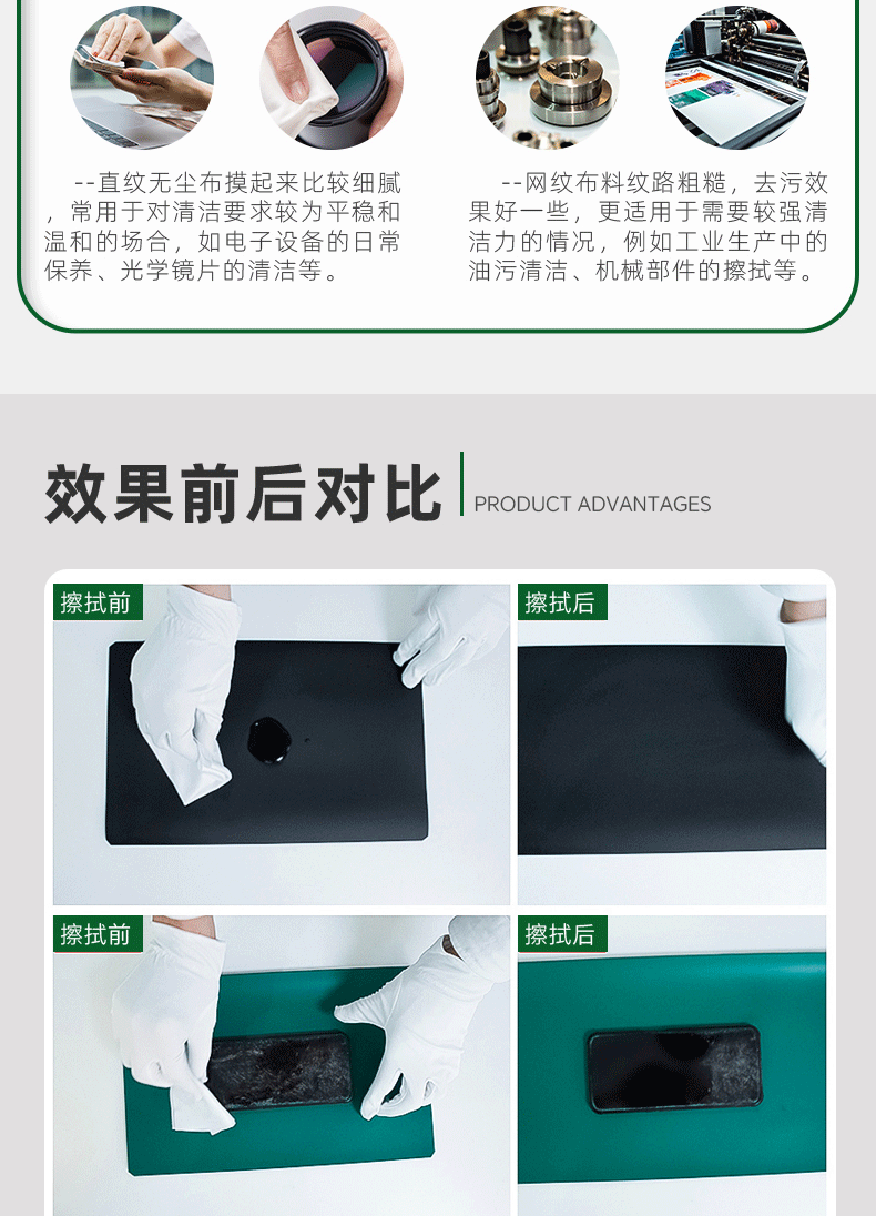 산업용 먼지가없는 천 휴대 전화 수리 테스트 천 린트가없는 레이저 렌즈 청소 큰 천 안경 테스트 천