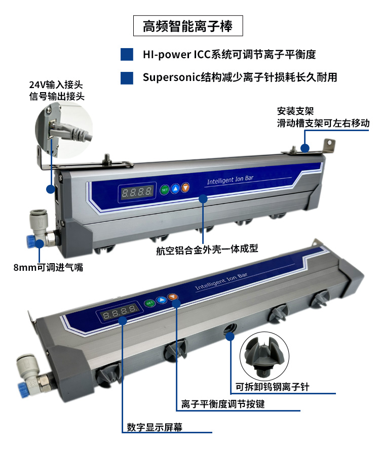 지능형 누설 경보 24V 통합 고주파 펄스 정전기 막대 이온 윈드로드 산업 제거기로드 조정