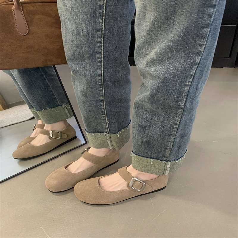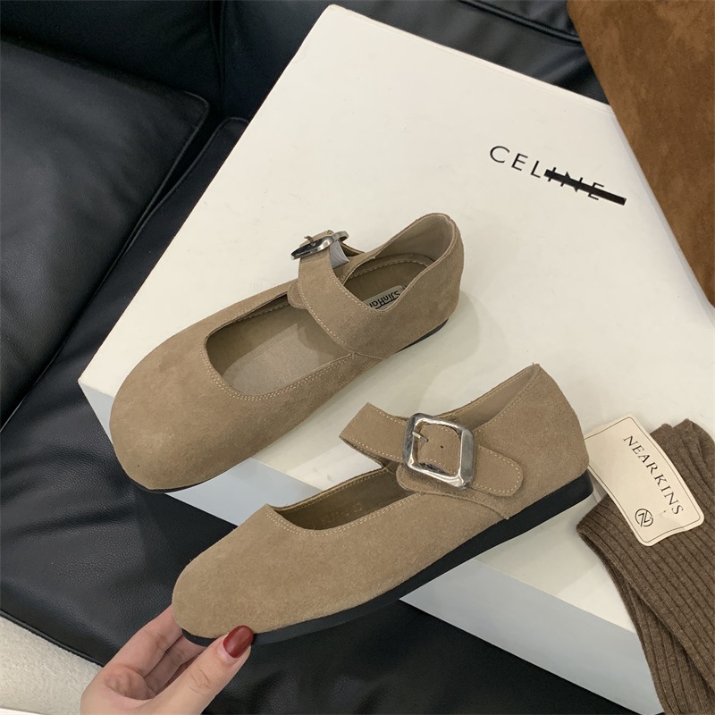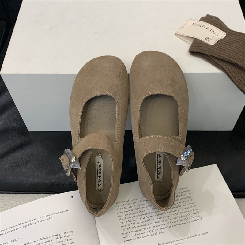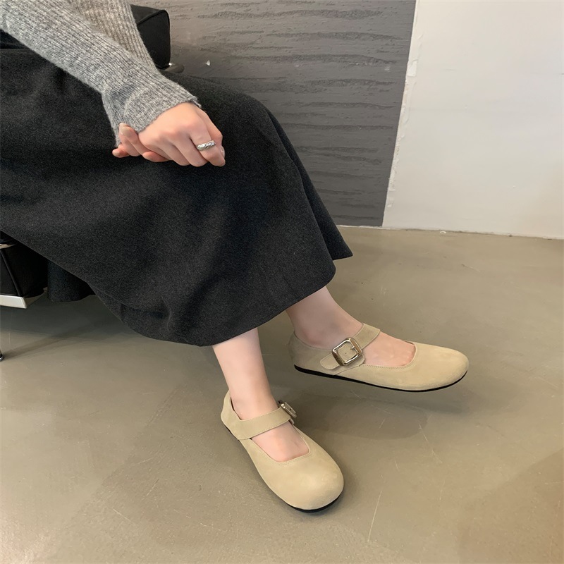 플랫 레트로 정품 가죽 메리 제인 신발 2024 년 가을 겨울 새로운 얕은 입 올 매치 싱글 레이어 신발 여성 신발스토어 가기