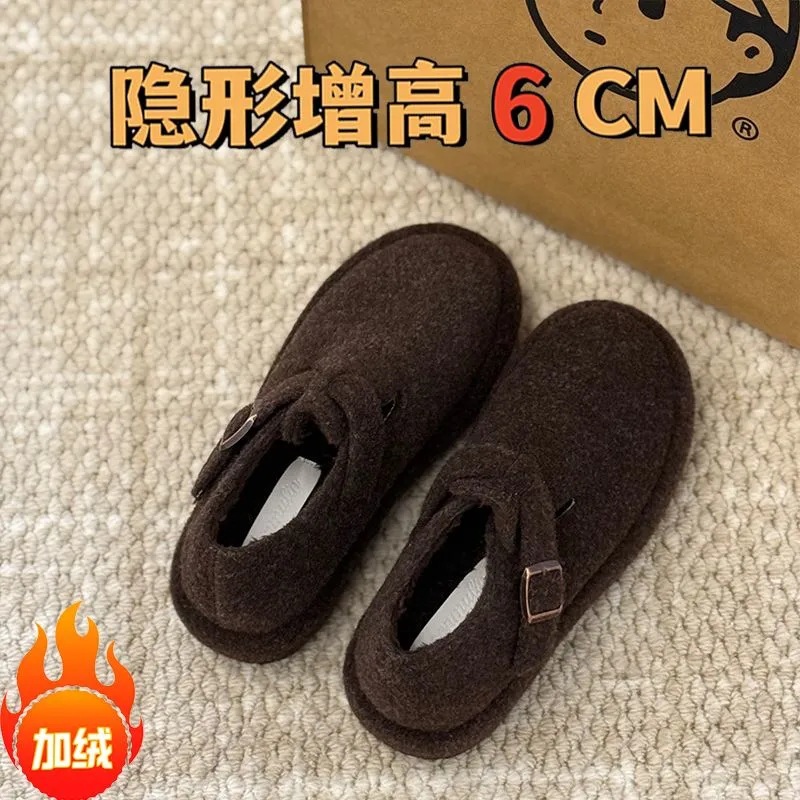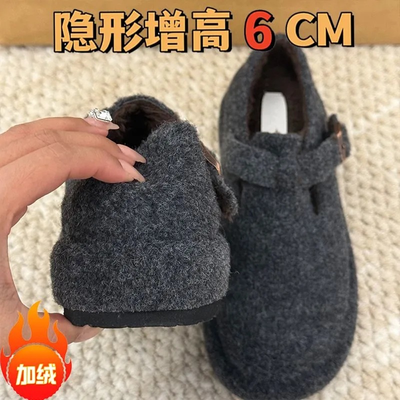 내부 높이 증가 6CM 두꺼운 바닥 레트로 가을 및 겨울 작은 기모 친밀한 게으른 슬립 온 기모 버켄 코튼 슈즈
