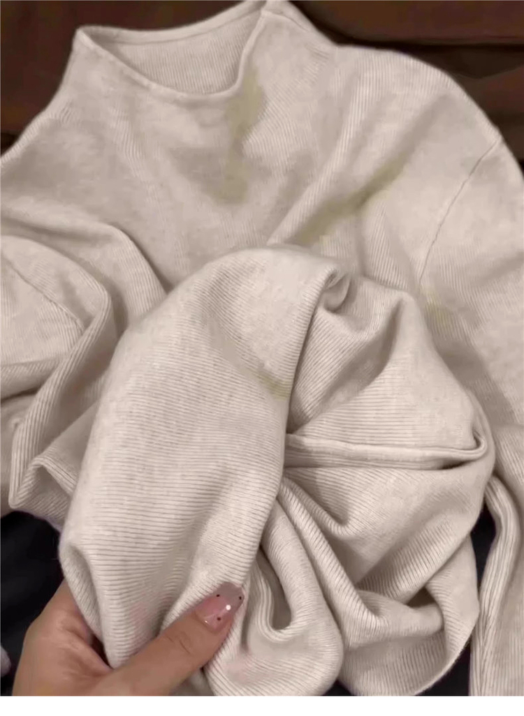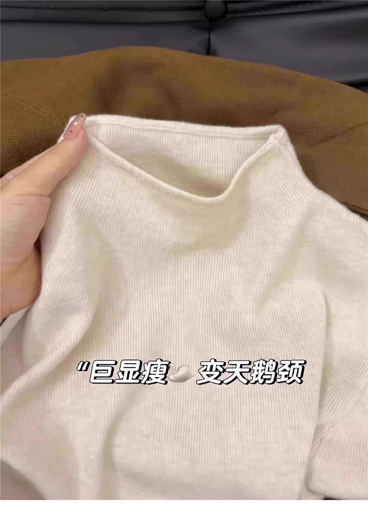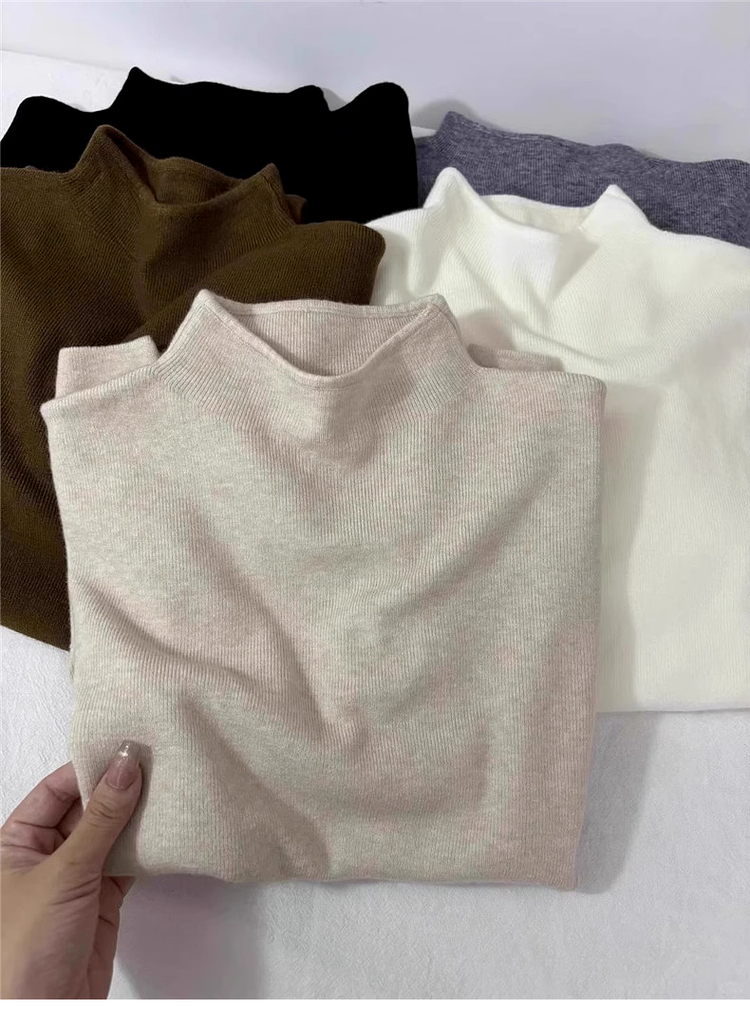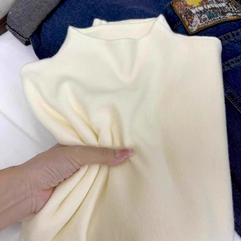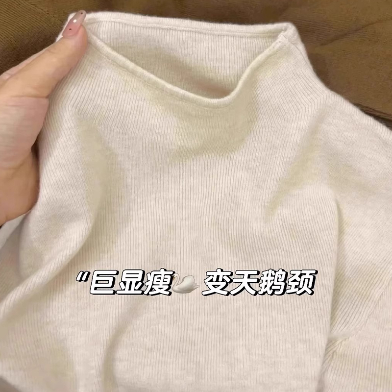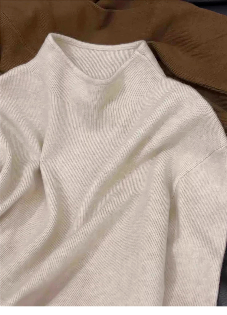 • [오프화이트] [슬림스웨터/화이트스웨터/한국적인 초가을룩/울스웨터/하프 터틀넥 밑단 셔츠/이너웨어]