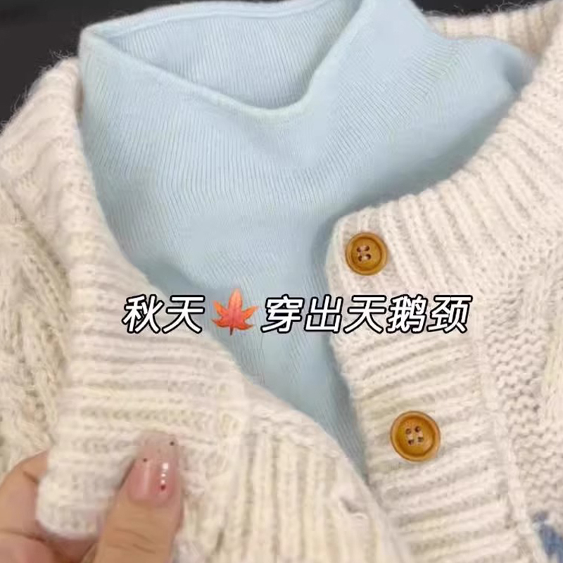 긴팔 블루 세미 하이 칼라 프론트 숄더 스웨터 여성의 깊은 가을과 겨울 스웨터 코트 내베이스 셔츠 세련된 탑