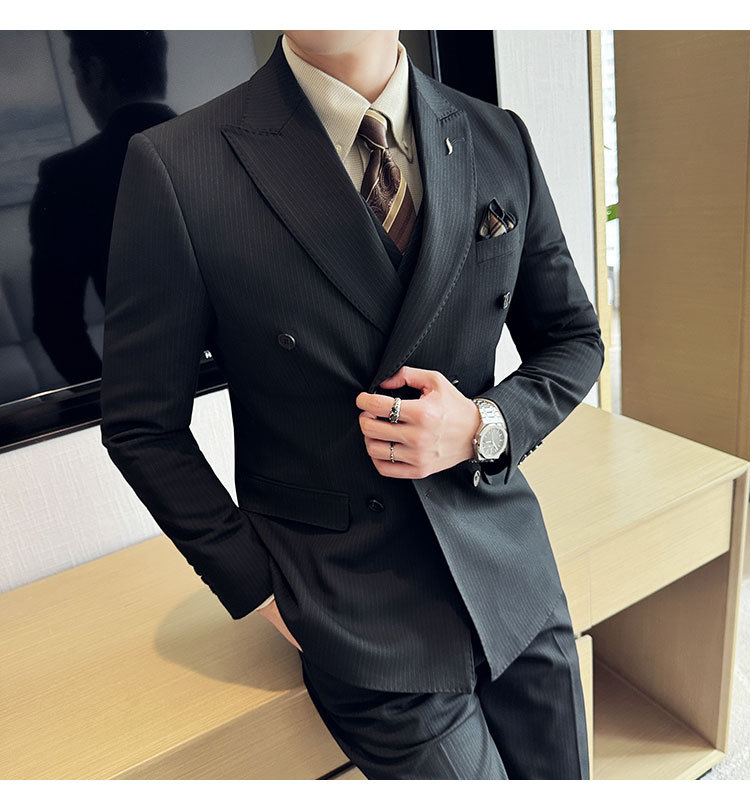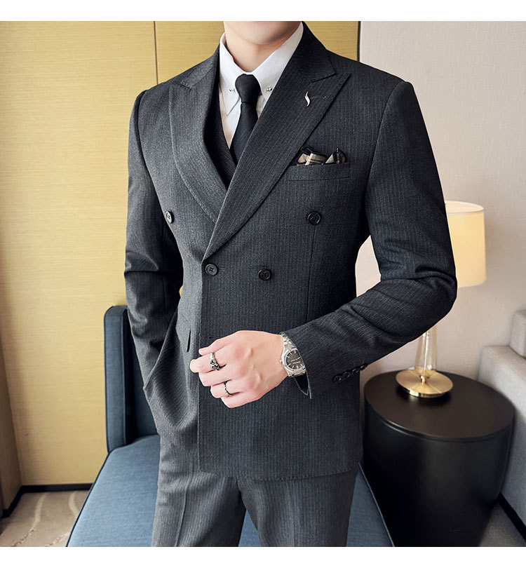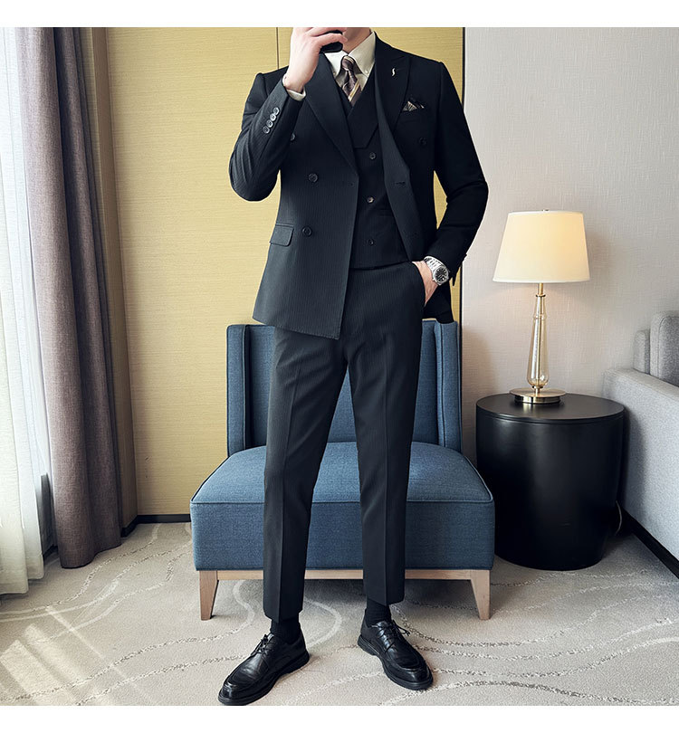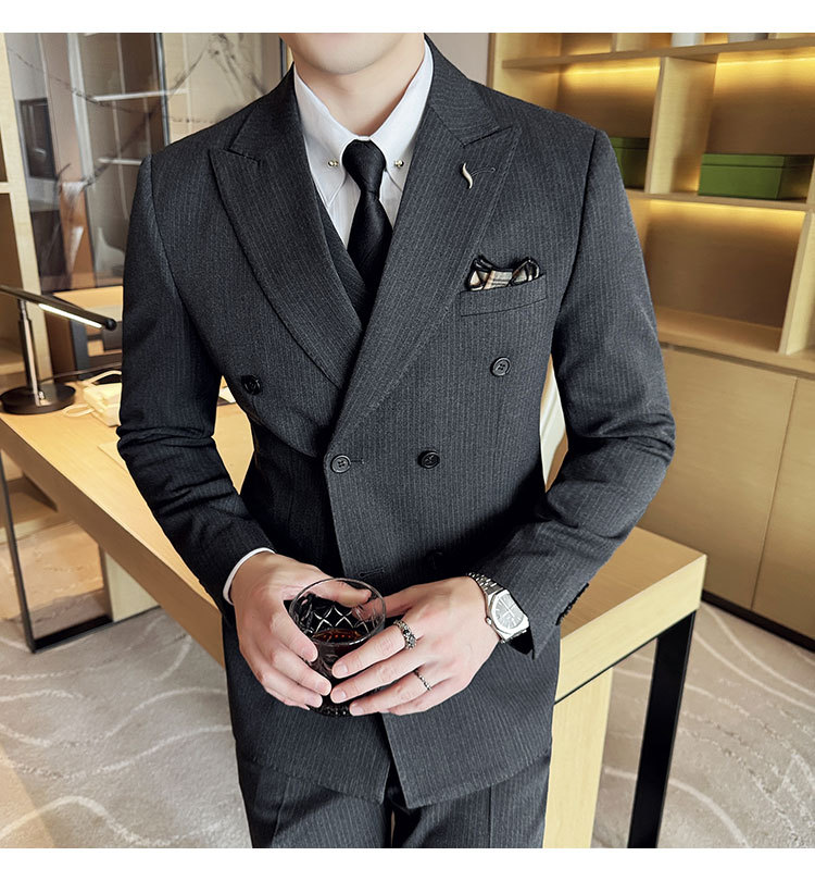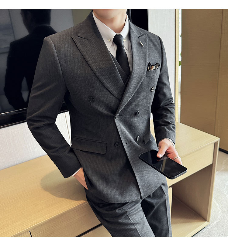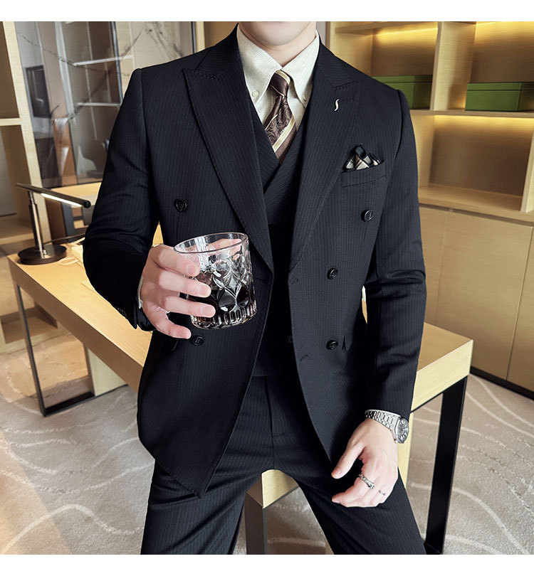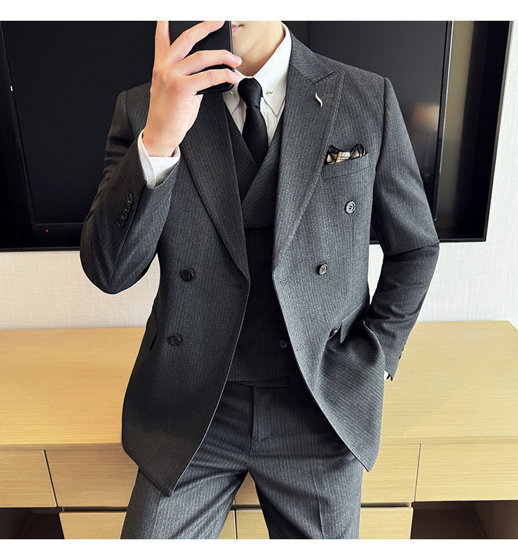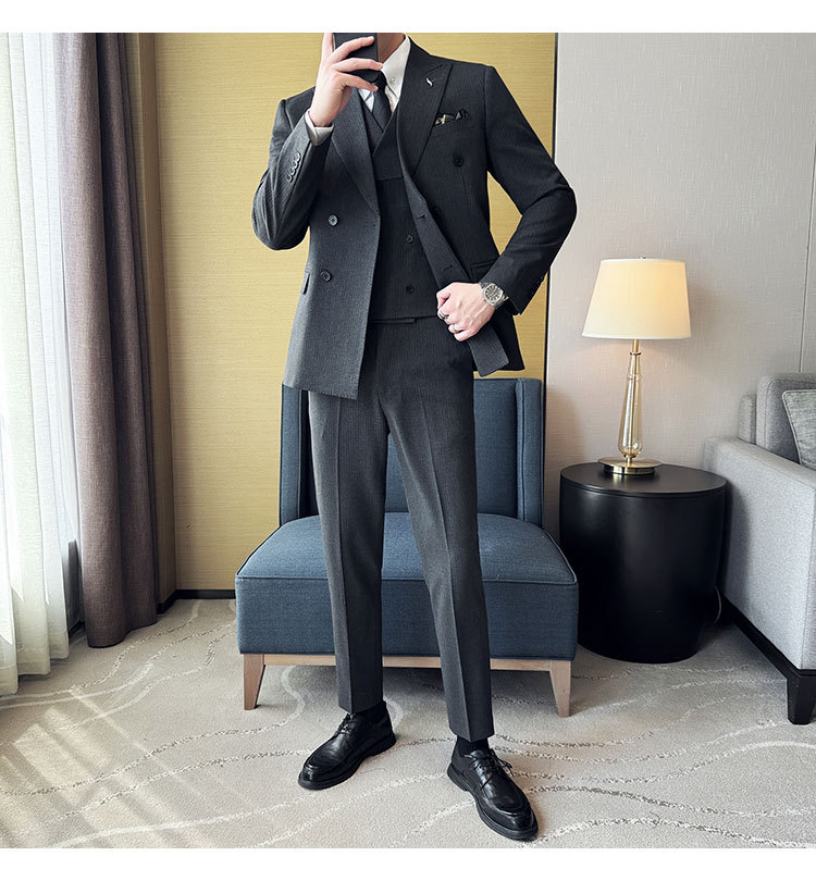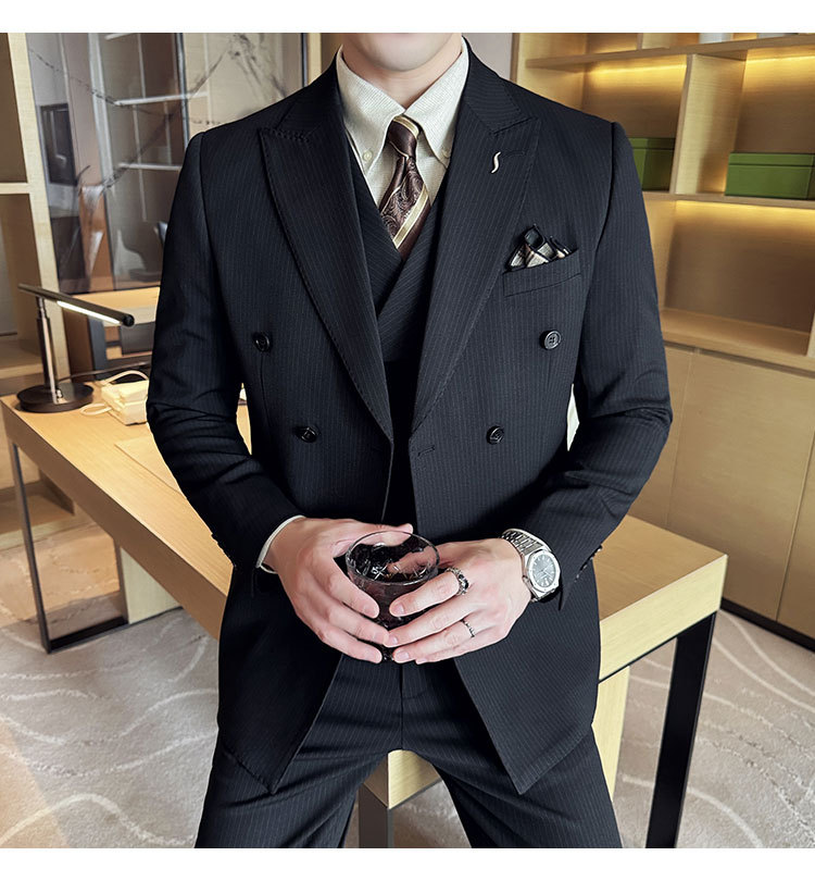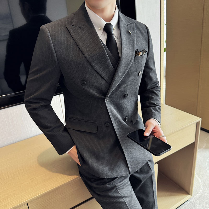 하이 엔드 센스 스트라이프 세트 신랑 웨딩 원피스 세트 3 피스 스튜디오 도매 그룹 구매 남성 원피스 세트스토어 가기