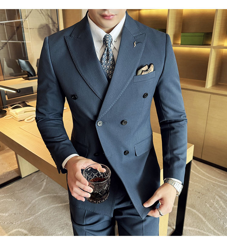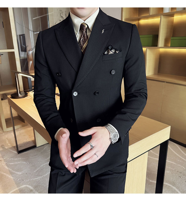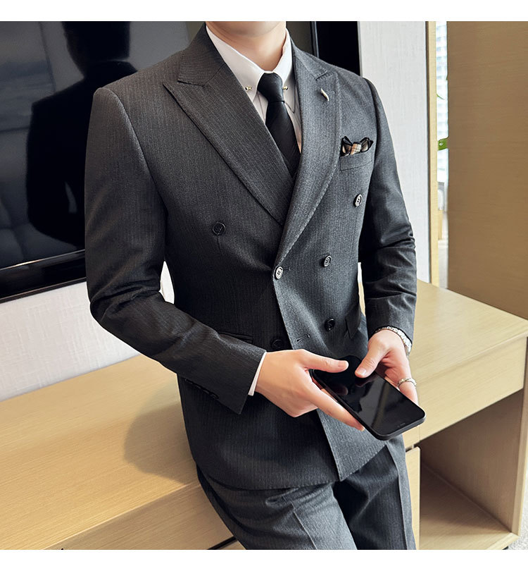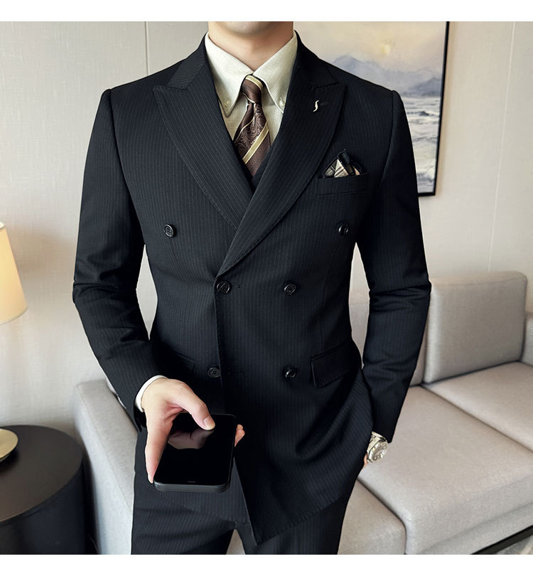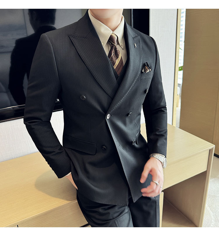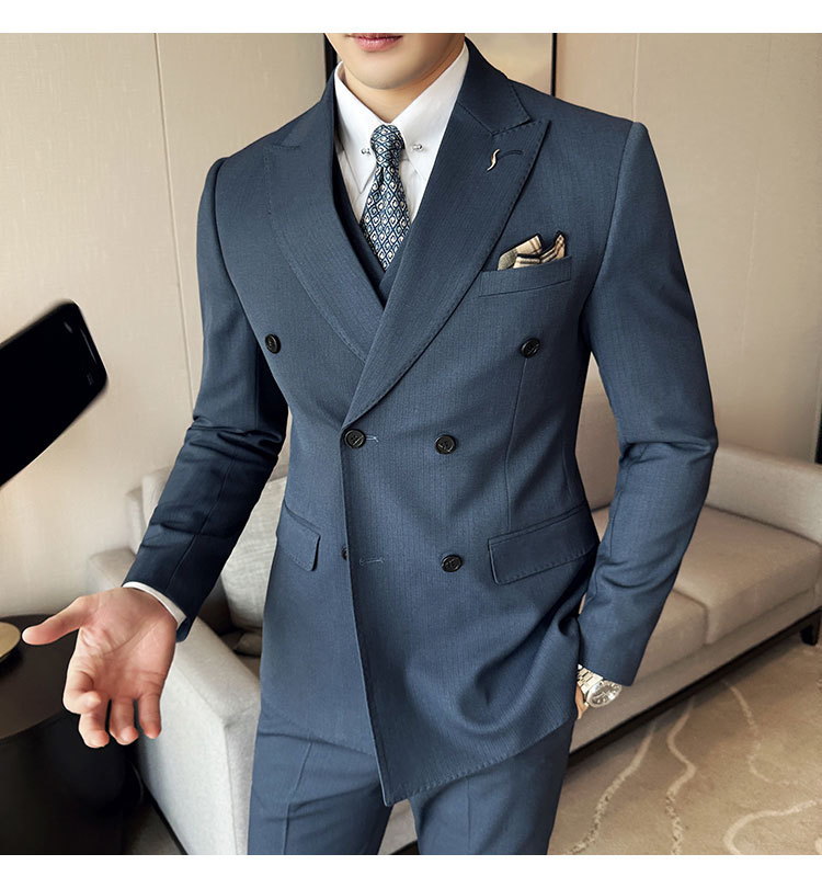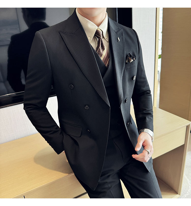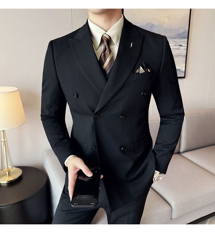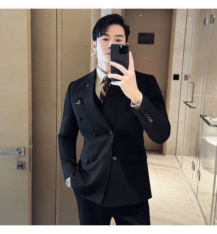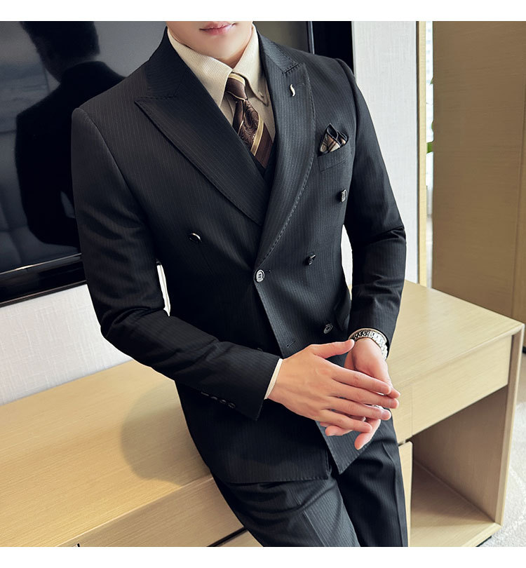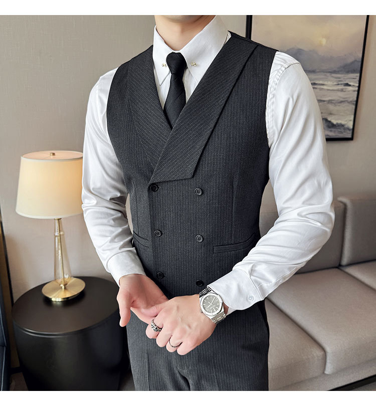 하이 엔드 센스 스트라이프 세트 신랑 웨딩 원피스 세트 3 피스 스튜디오 도매 그룹 구매 남성 원피스 세트스토어 가기