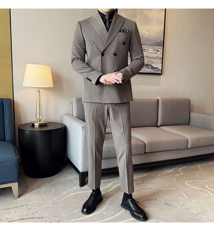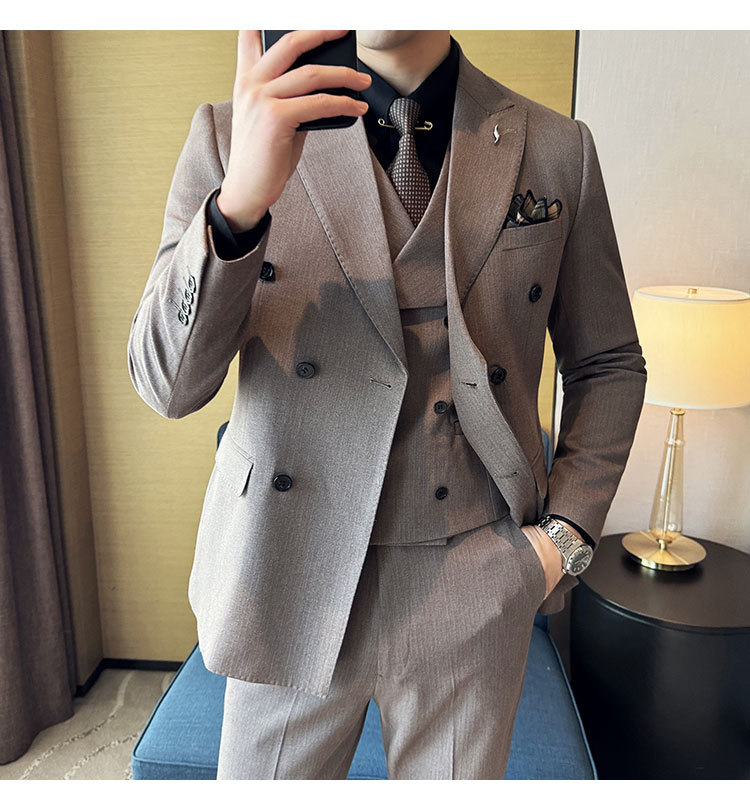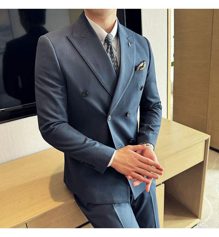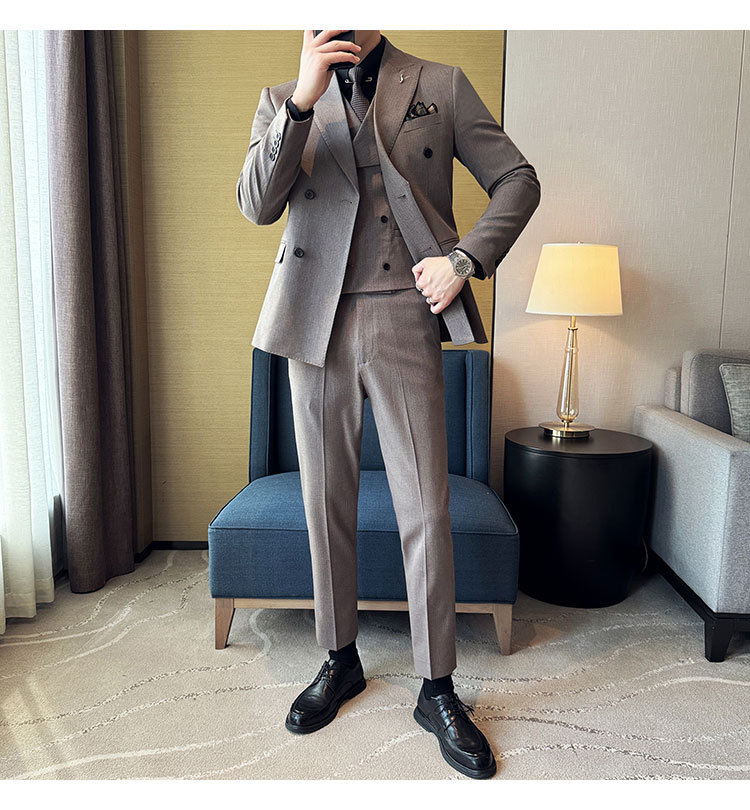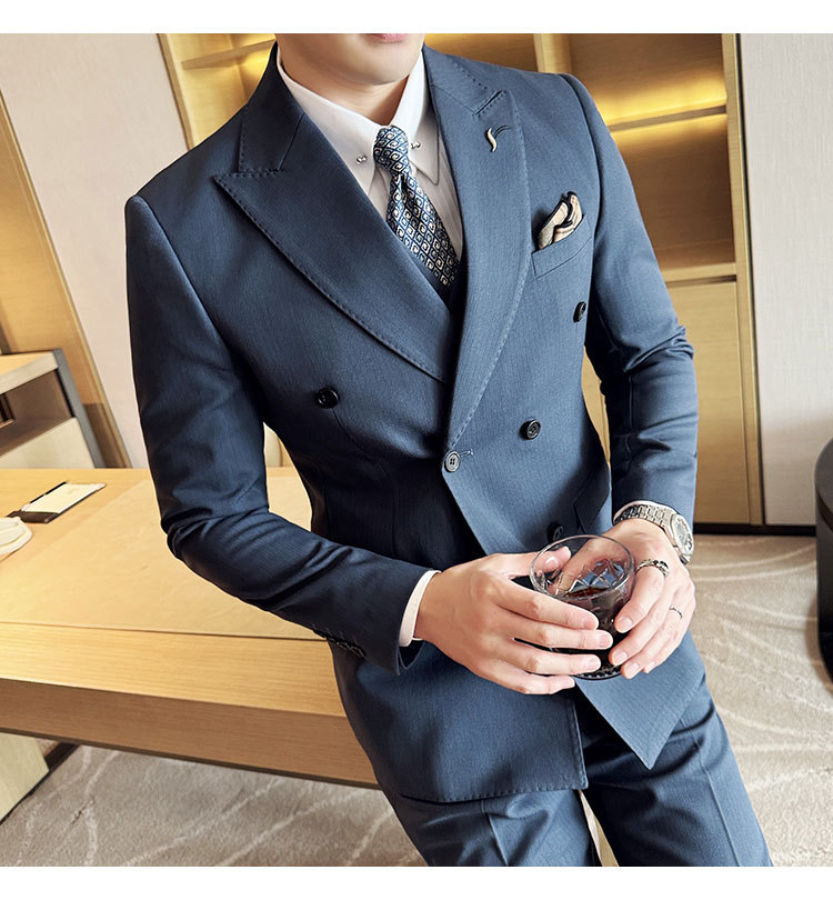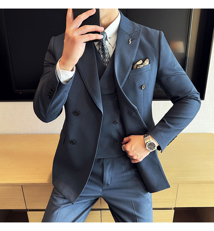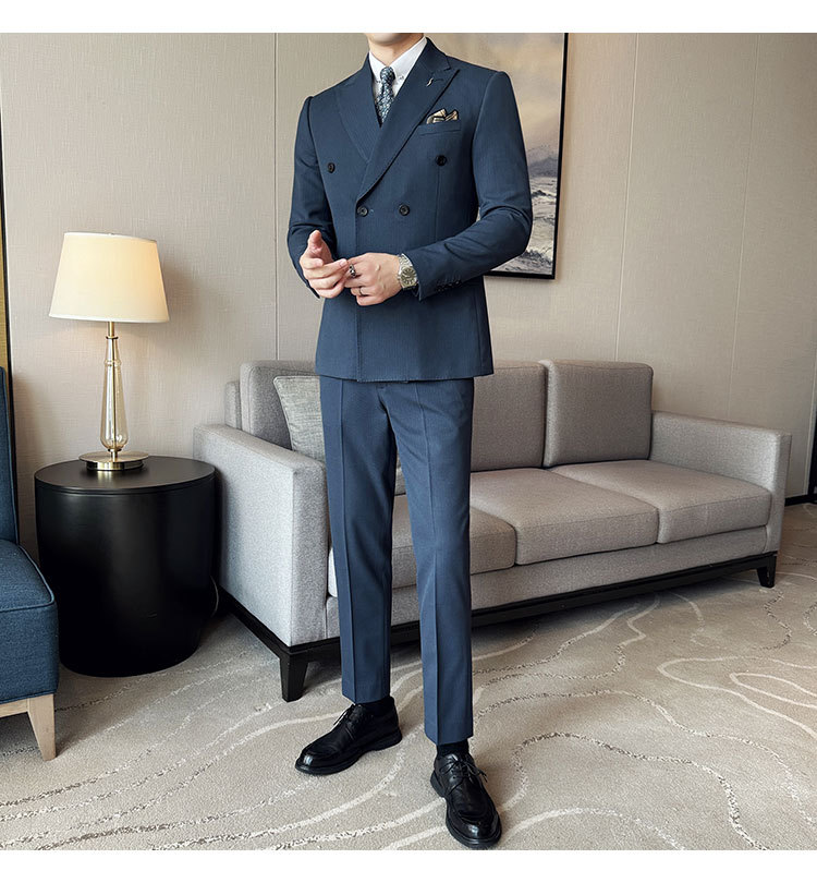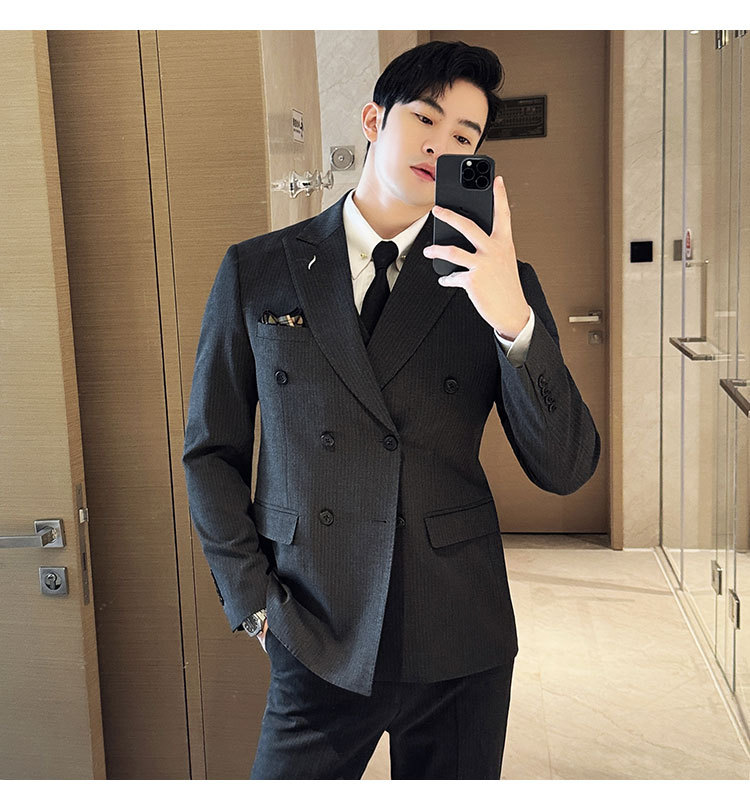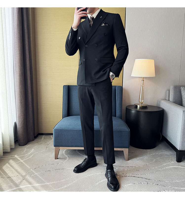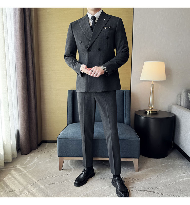 하이 엔드 센스 스트라이프 세트 신랑 웨딩 원피스 세트 3 피스 스튜디오 도매 그룹 구매 남성 원피스 세트스토어 가기