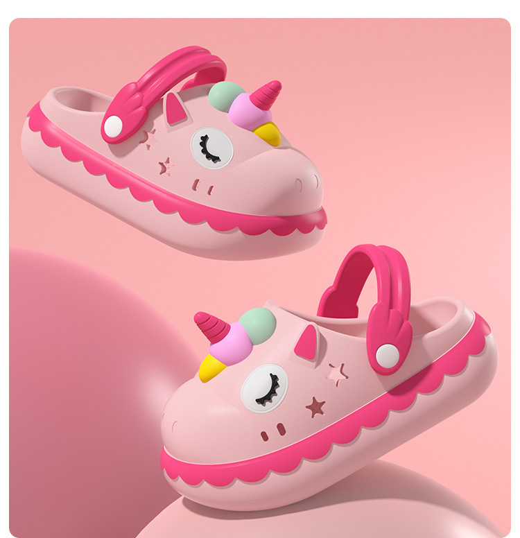 유니콘 소녀 슬리퍼 여름 공주 귀여운 만화 아기 키즈 실내 미끄럼 방지 소녀 구멍 신발