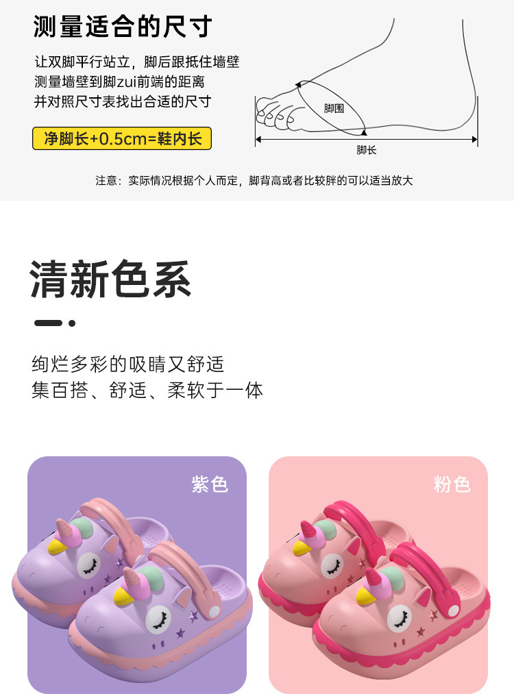 유니콘 소녀 슬리퍼 여름 공주 귀여운 만화 아기 키즈 실내 미끄럼 방지 소녀 구멍 신발스토어 가기