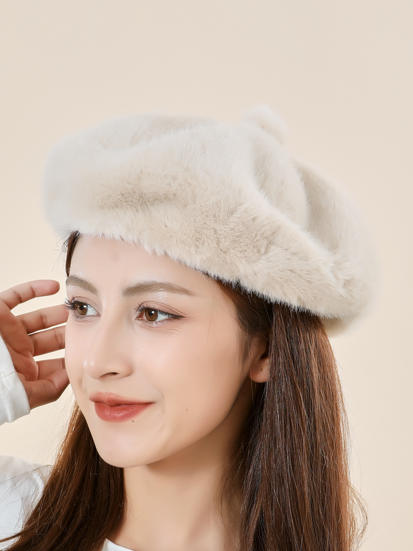 새로운 가을과 겨울 모방 모피 밍크 울 베레 여성 두꺼운 봉제 팔각형 모자 국경 간 패션 간단한 따뜻한 모자