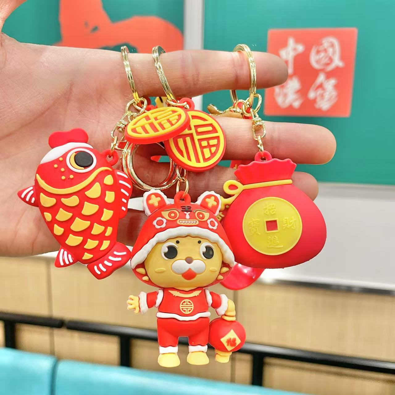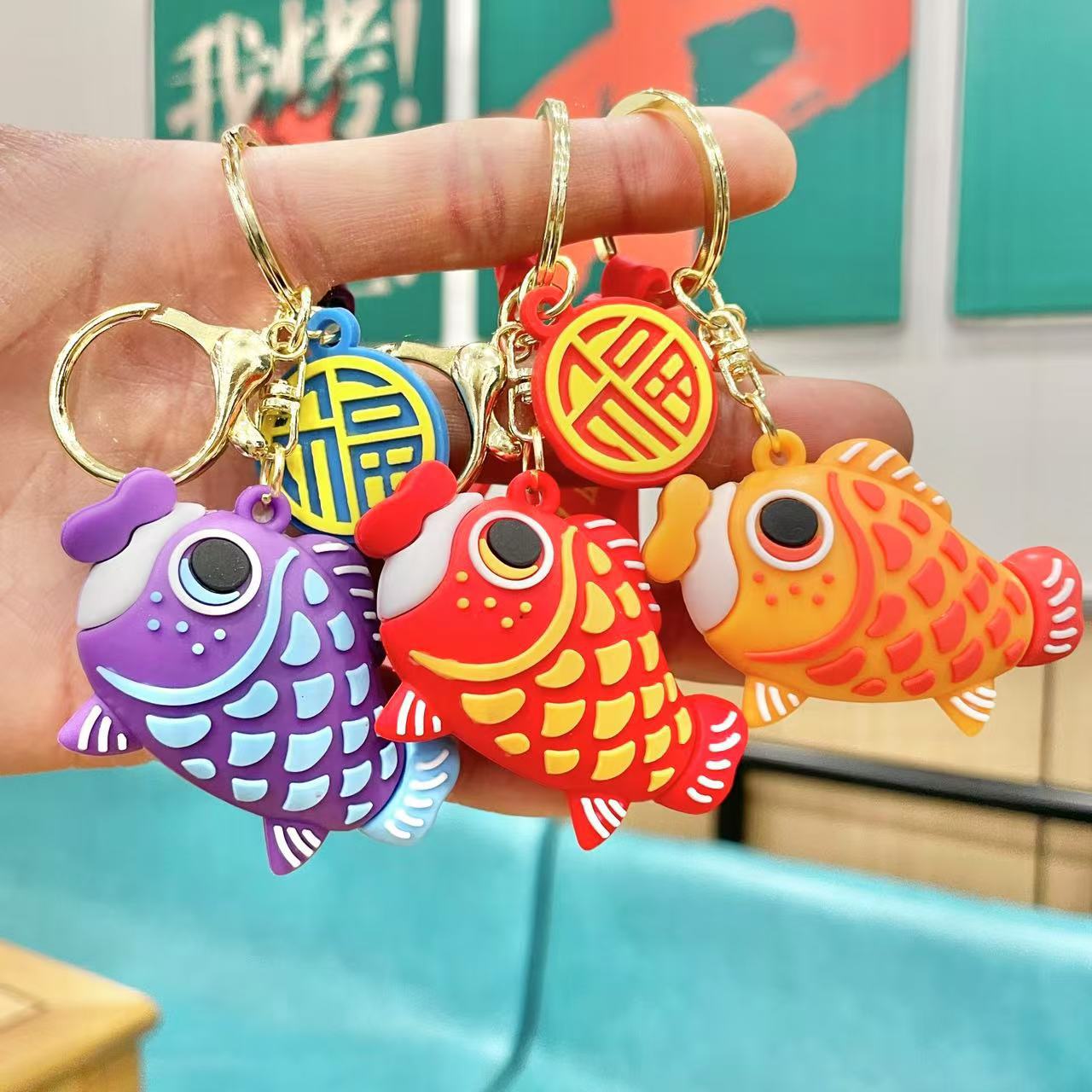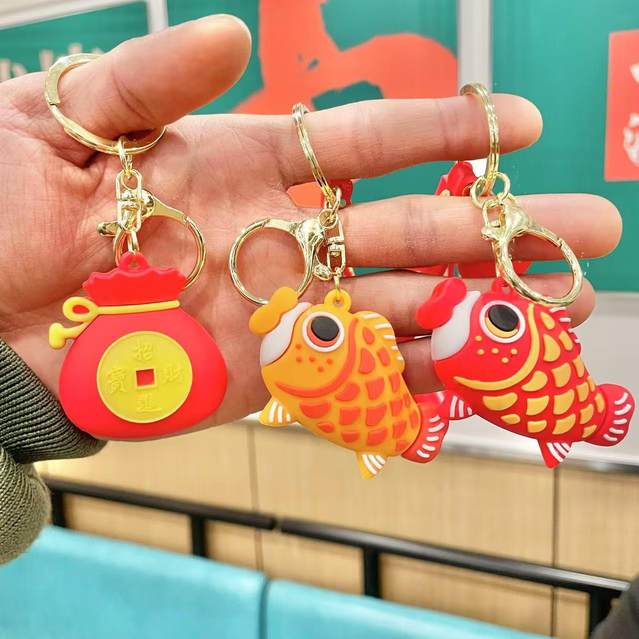 매년 새해 잉어 키 체인 펜던트 자동차 수하물 액세서리 인형 기계 푸시 블라인드 박스 선물 도매스토어 가기