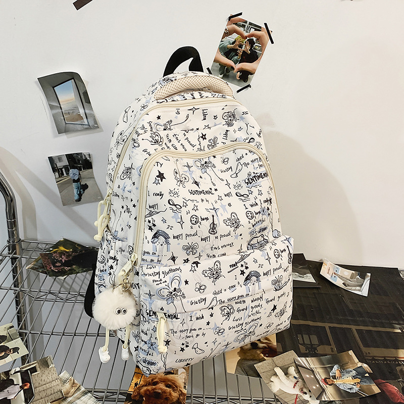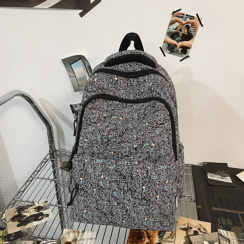 낙서 스쿨백 소년 중학생 시니어 고등학교 한국 스타일 간단한 배낭 남성 패션 유행 대학생 배낭 여성 트렌디스토어 가기