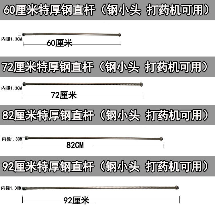 • 72cm 여분의 두꺼운 강철 직선 막대(소형 헤드)에는 노즐이 함께 제공됩니다.
