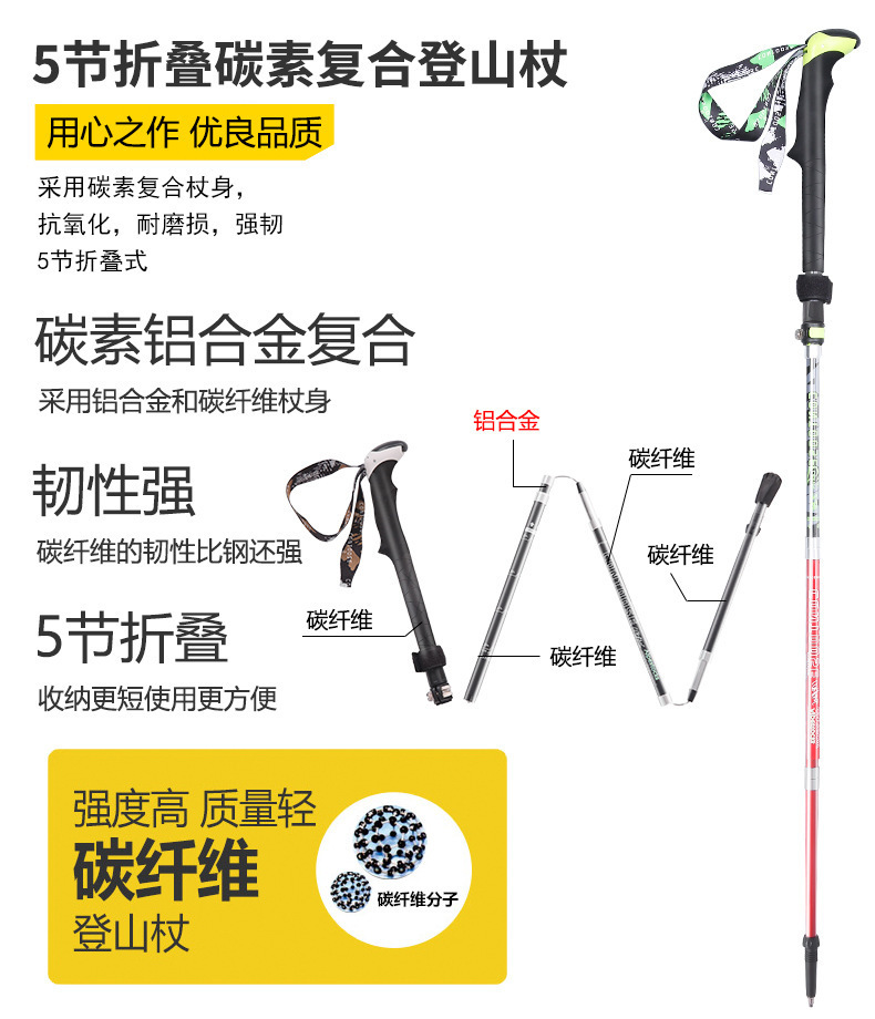 등산 스틱 탄소 섬유 접히는 등산 지팡이 울트라 라이트 탄소 망원경 워킹 스틱 야외 등산 스틱