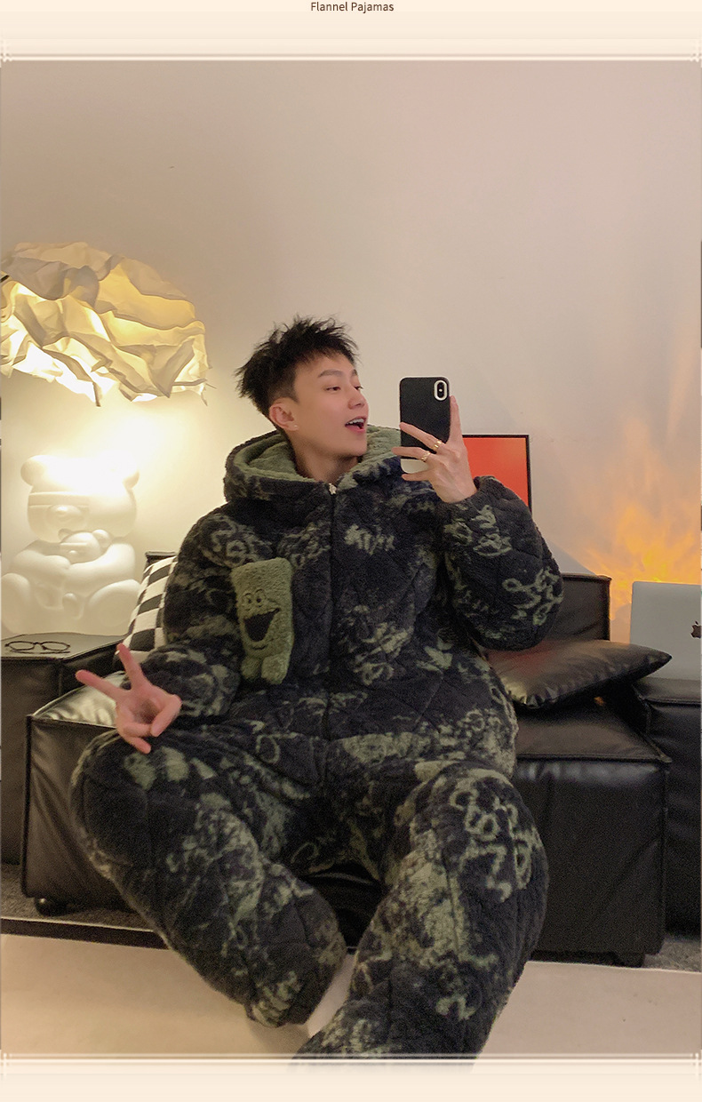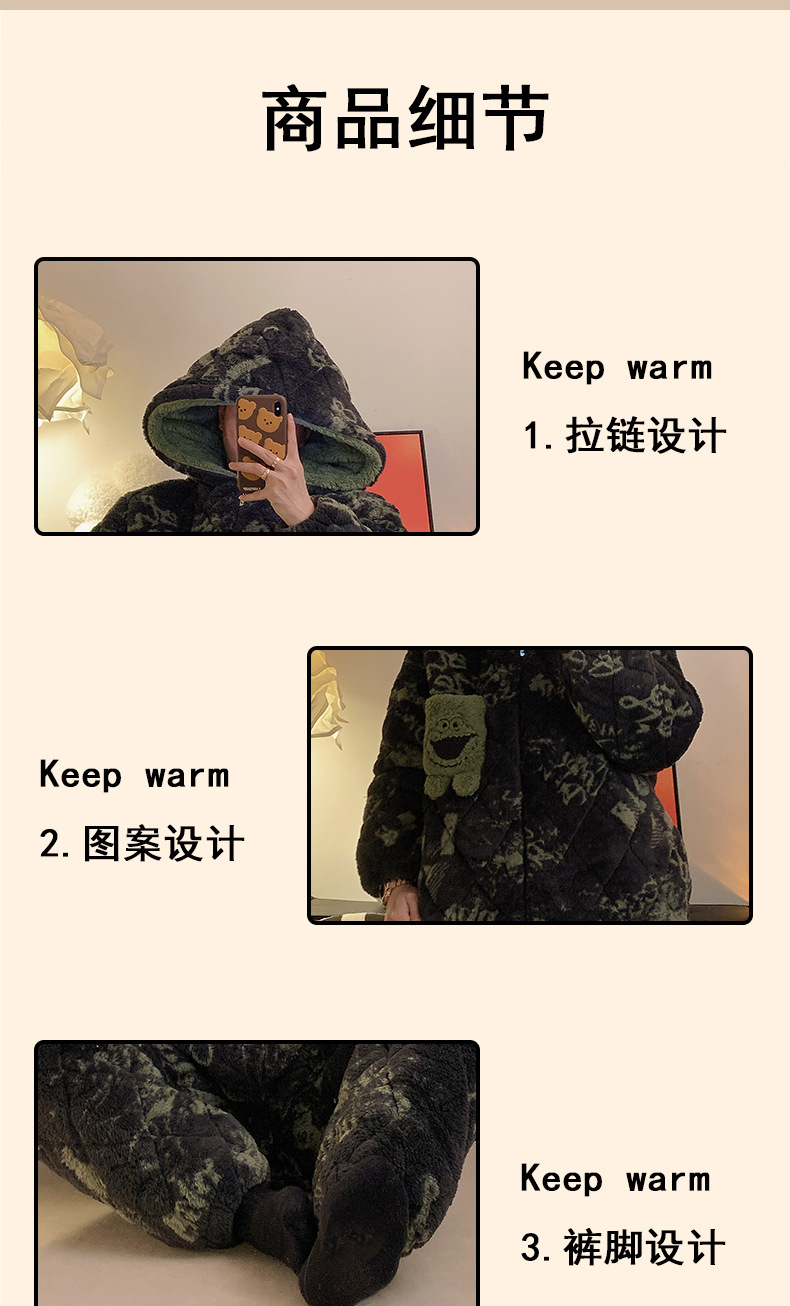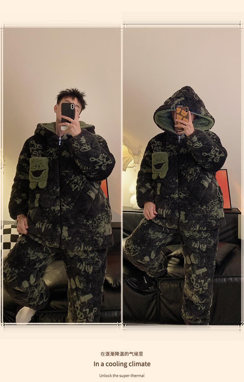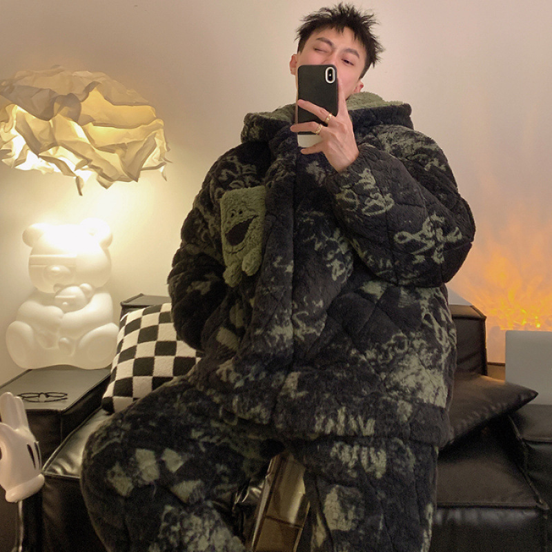 잠옷 남자의 가을과 겨울 두꺼운 기모 산호 양털 3 층 면화 자켓 남자의 겨울 슈퍼 두꺼운 따뜻한 집 옷스토어 가기