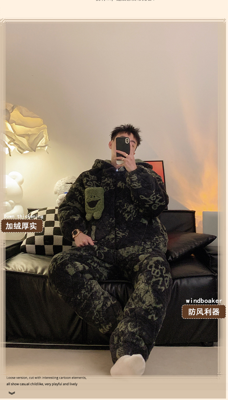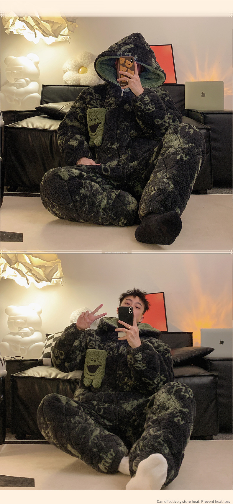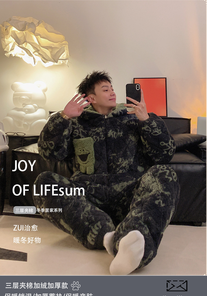 잠옷 남자의 가을과 겨울 두꺼운 기모 산호 양털 3 층 면화 자켓 남자의 겨울 슈퍼 두꺼운 따뜻한 집 옷스토어 가기