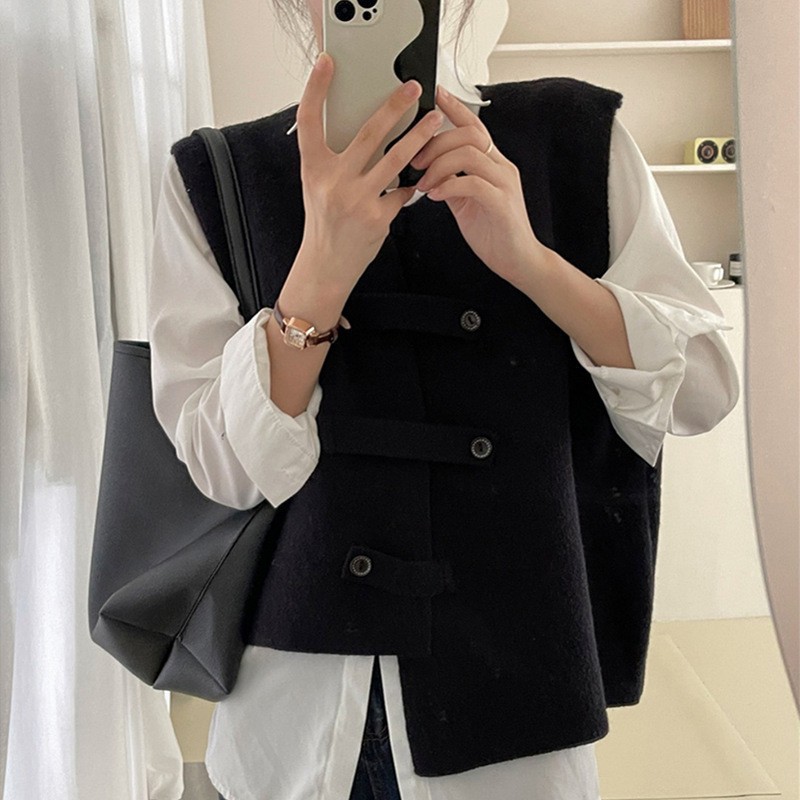 봄과 가을 외부 착용 스태킹 카디건 웨이스트 코트 우아한 예술적 스타일 틈새 디자인 불규칙한 니트 조끼 여성스토어 가기