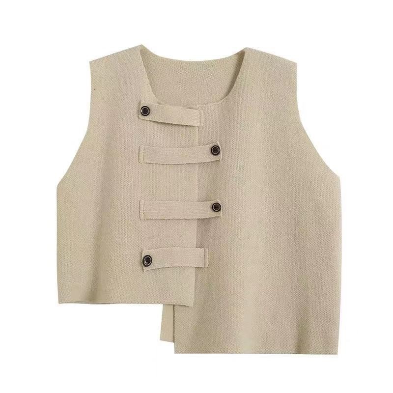 봄과 가을 외부 착용 스태킹 카디건 웨이스트 코트 우아한 예술적 스타일 틈새 디자인 불규칙한 니트 조끼 여성
